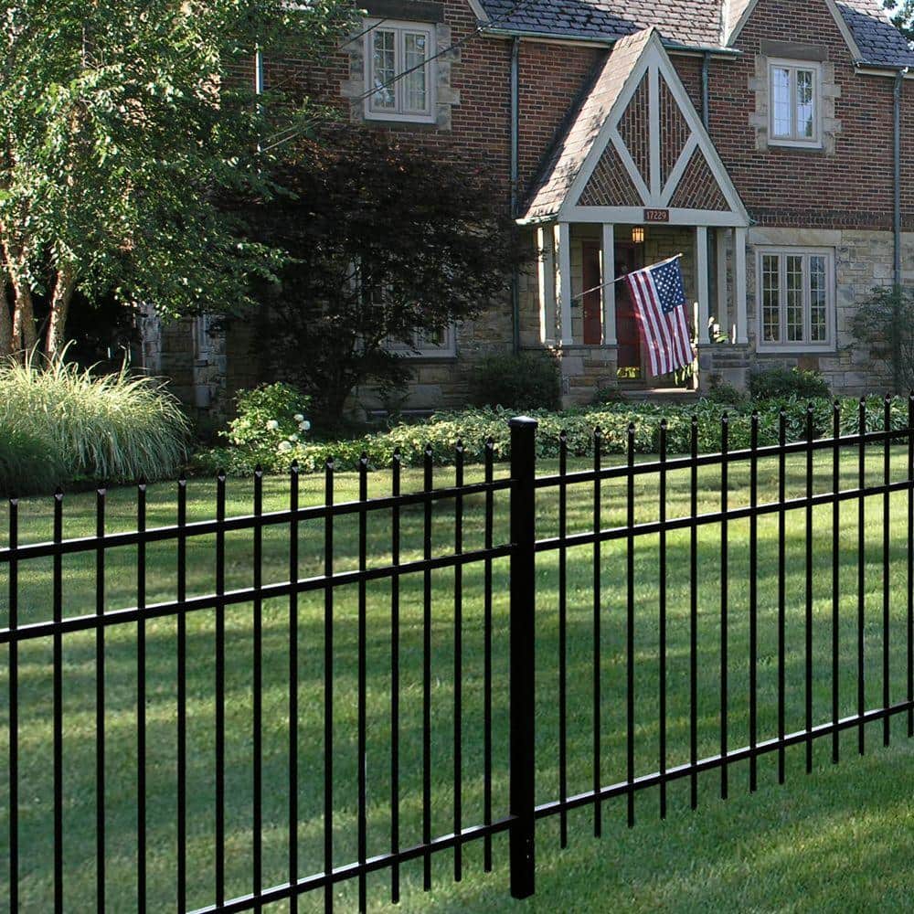 Barrette Outdoor Living Cascade Heavy-Duty 2-1/2 in. x 2-1/2 in. x 7-1/3 ft. Black Aluminum Fence Line Post
