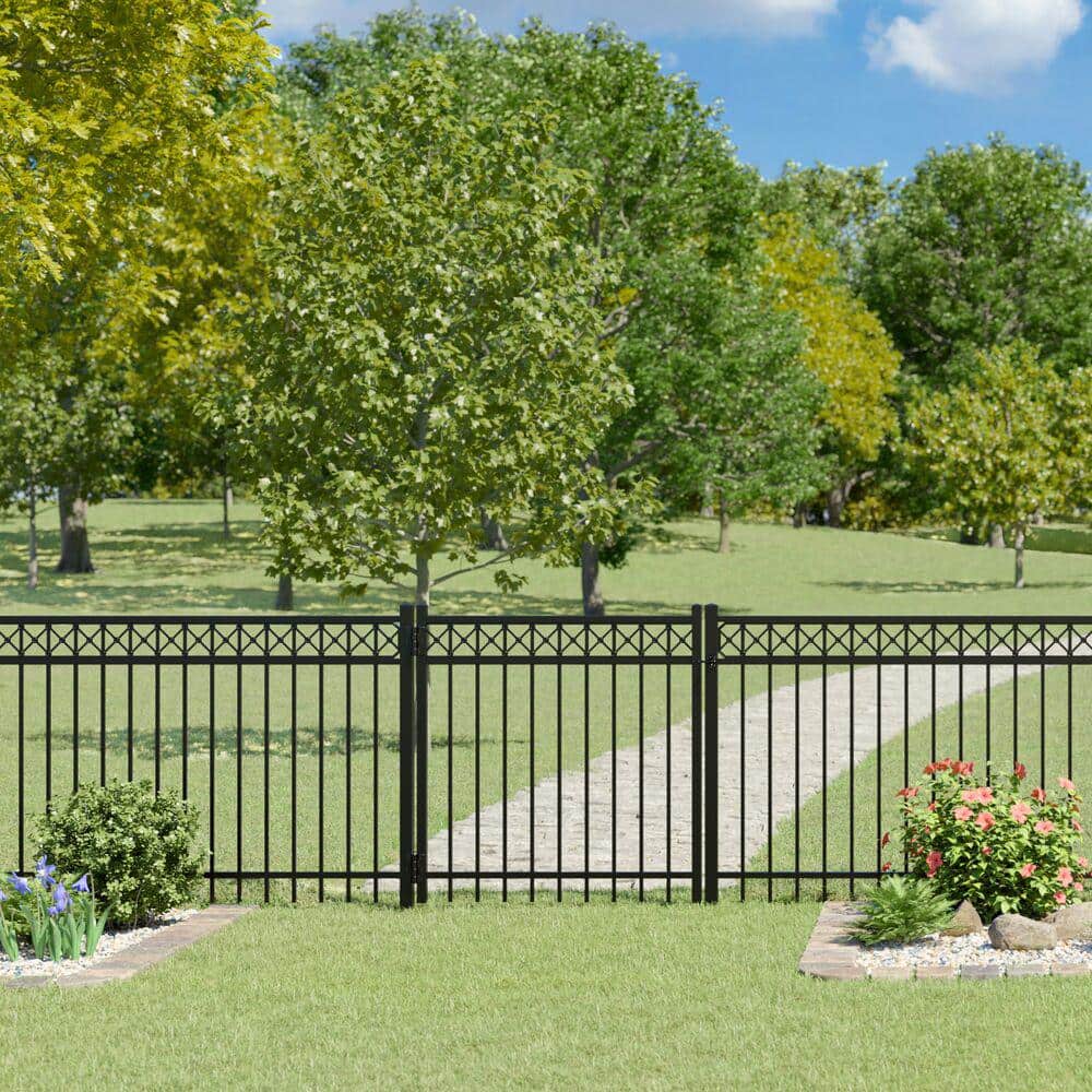 Barrette Outdoor Living Highland 4 ft. x 4 ft. Black Straight Decorative Flat Top Metal Fence Gate