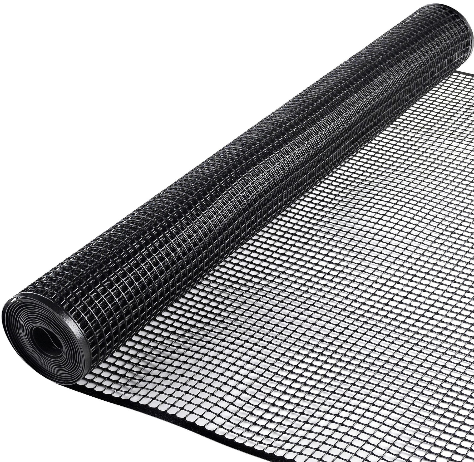 The BOEN 25-ft Black Plastic Mesh Fence is perfect for safeguarding gardens, young trees, and ensuring the safety of children and pets on decks. Made from high-quality HDPE, its durable 7-gauge construction provides a reliable barrier against unwanted animal intrusions.