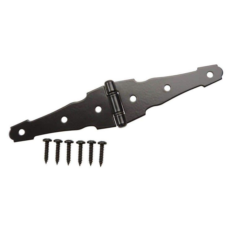 Upgrade your project with the Everbilt 4 in. Black Heavy Duty Decorative Strap Hinge, designed for doors, gates, sheds, and tool boxes. Its steel construction and black powder-coated finish provide durability and superior rust resistance, while offset screw holes enhance installation strength.