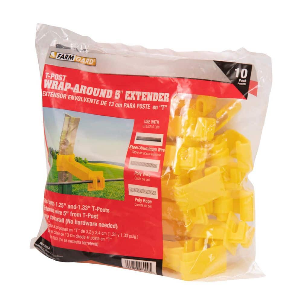The FARMGARD T-Post Wrap-Around 5 in. Extender is a versatile solution for extending wire fencing 5 inches away from T-posts. Designed for effortless installation, these snap-on insulators are perfect for professionals seeking efficiency in fencing projects.