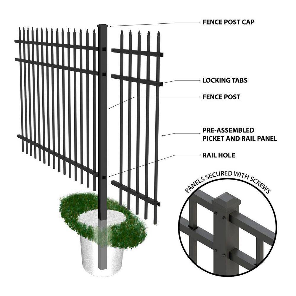 FORGERIGHT 72 in. Osprey Black Aluminum End/Gate Fence Post with Flat Cap