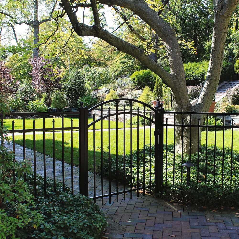 Elevate your outdoor space with the Concord 4-ft H x 4-ft W Black Aluminum Decorative Fence Gate. Crafted with an arched-top design and corrosion-resistant, powder-coated aluminum, this elegant gate combines style and durability, making it a perfect choice for both residential and pool code applications.