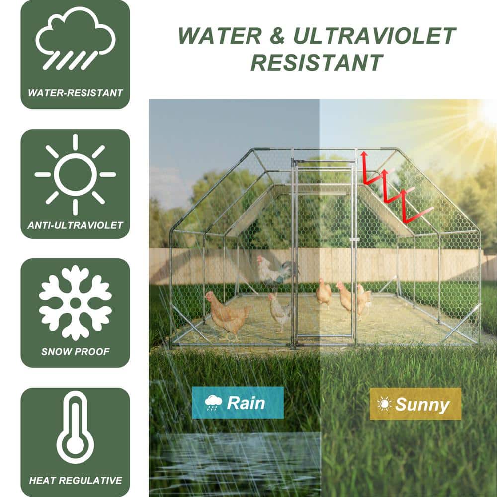 The GOGEXX 10x20 ft. Galvanized Chicken Coop is an ideal solution for safe and efficient poultry farming. With a sturdy, rust-resistant frame and a waterproof cover, it ensures long-lasting protection against the elements and predators. Perfect for raising chickens, ducks, and more in any outdoor environment.