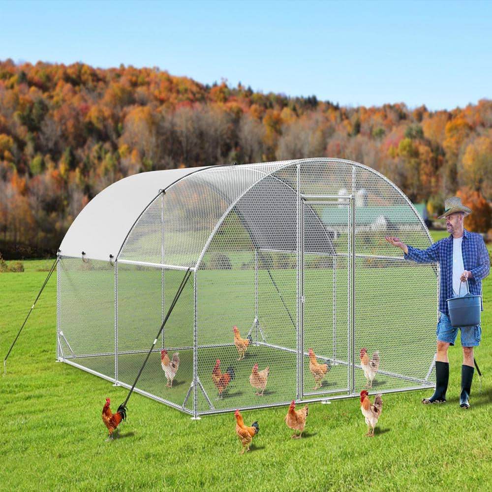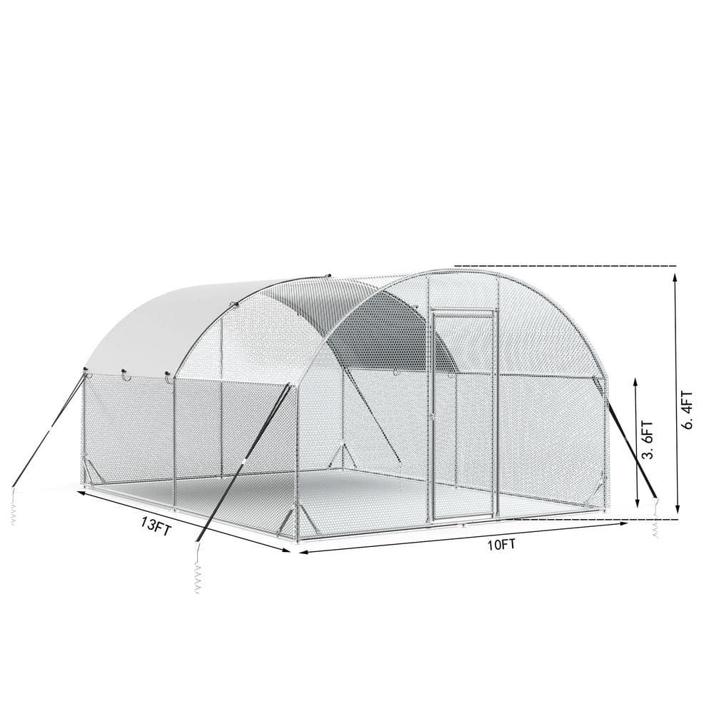 GOGEXX 13ft. Lx10 ft. Wx6.4 ft. H Large Metal Walkin Chicken Coop Poultry Cage Rabbit House With Waterproof Cover Outdoors Yard