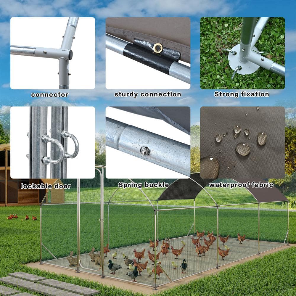 GOGEXX 19.7 ft.L x 9.8 ft. W x 6.6 ft. Large Metal Walk-In Chicken Coop Poultry Cage with Waterproof Cover for Outdoors Yard