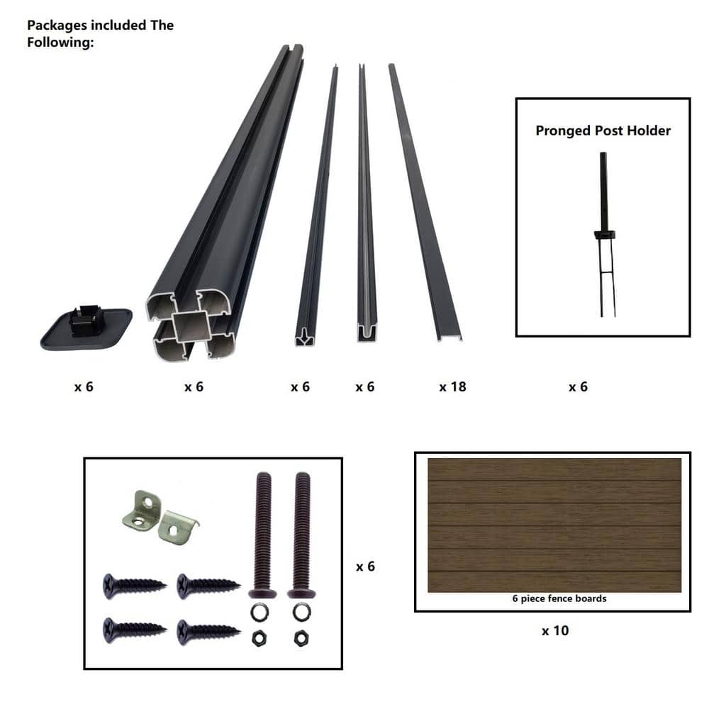 LH EP Complete Kit 6 ft. x 6 ft. Embossed Brown WPC Composite Fence Panel with Pronged Holders and Post Kits (5-set)