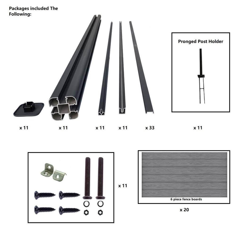 LH EP Complete Kit 6 ft. x 6 ft. Embossed Gray WPC Composite Fence Panel with Pronged Holders and Post Kits (10-set)