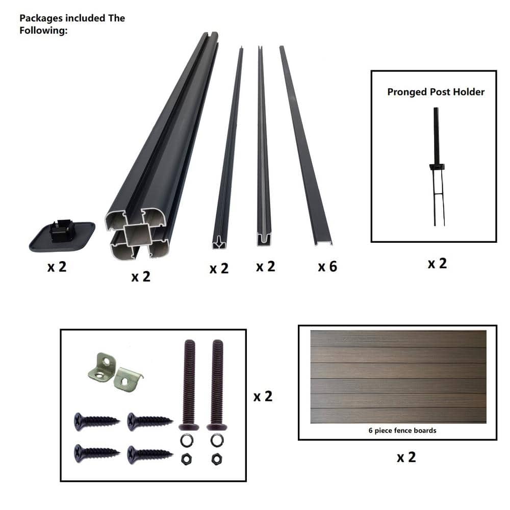 LH EP Complete Kit 6 ft. x 6 ft. Wood Grain Brown WPC Composite Fence Panel w/Pronged Holders and Post Kits (1 set)