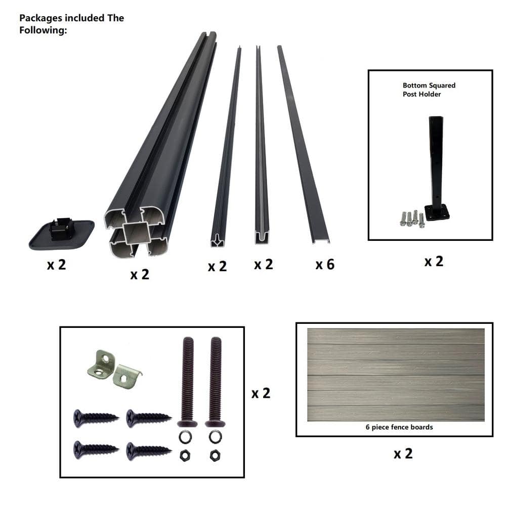 LH EP Complete Kit 6 ft. x 6 ft. Wood Grain Castle Gray WPC Composite Fence Panel w/Bottom Squared Holders Post Kits (1 set)