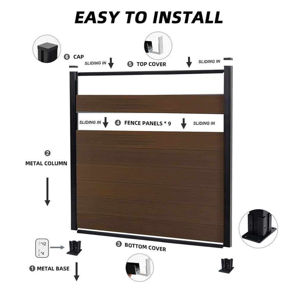 mondaria Outdoor 6 ft. H x 6 ft. W Brown Composite Fence Panel (10-Pack) with 2-Columns Garden Fence Board
