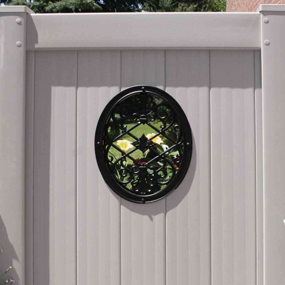 Transform your outdoor space with the NUVO IRON Oval Black Cast Aluminum Fence and Gate Insert. This stylish insert adds a modern touch to fences, gates, and privacy walls, with a robust cast aluminum build for lasting durability. Ideal for both pros and DIY enthusiasts, it includes all necessary hardware for quick and easy installation.