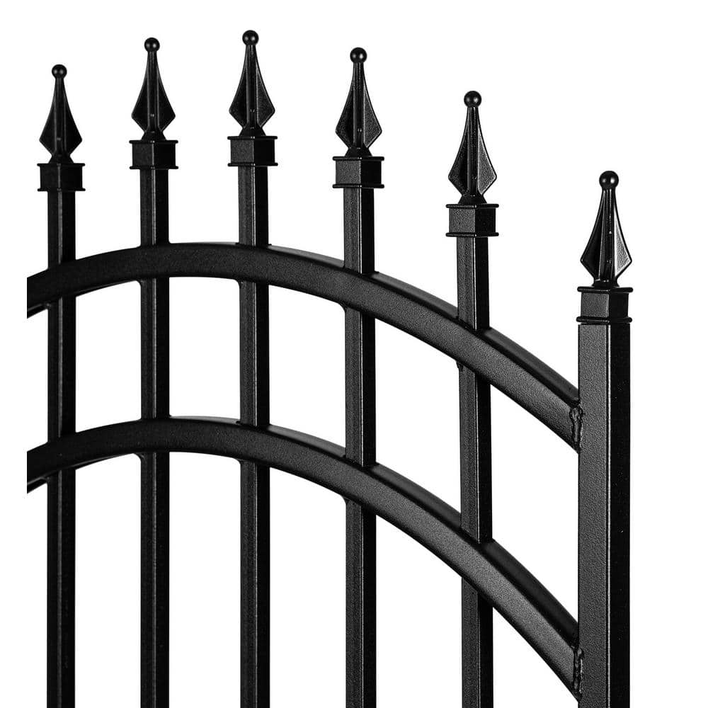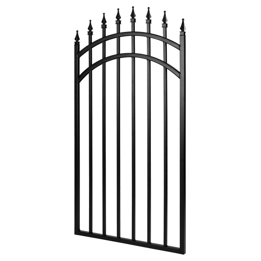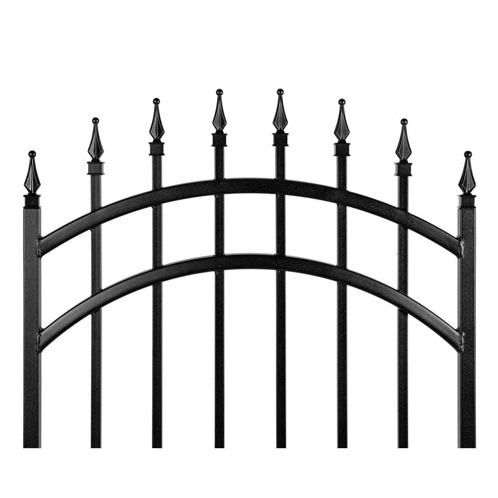 NUVO IRON 2.75 ft. x 4.67 ft. Tiger Eye Profile Black Iron Center Point Arched Top Fence Gate
