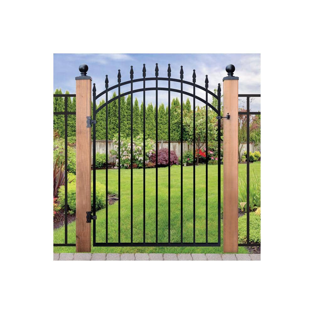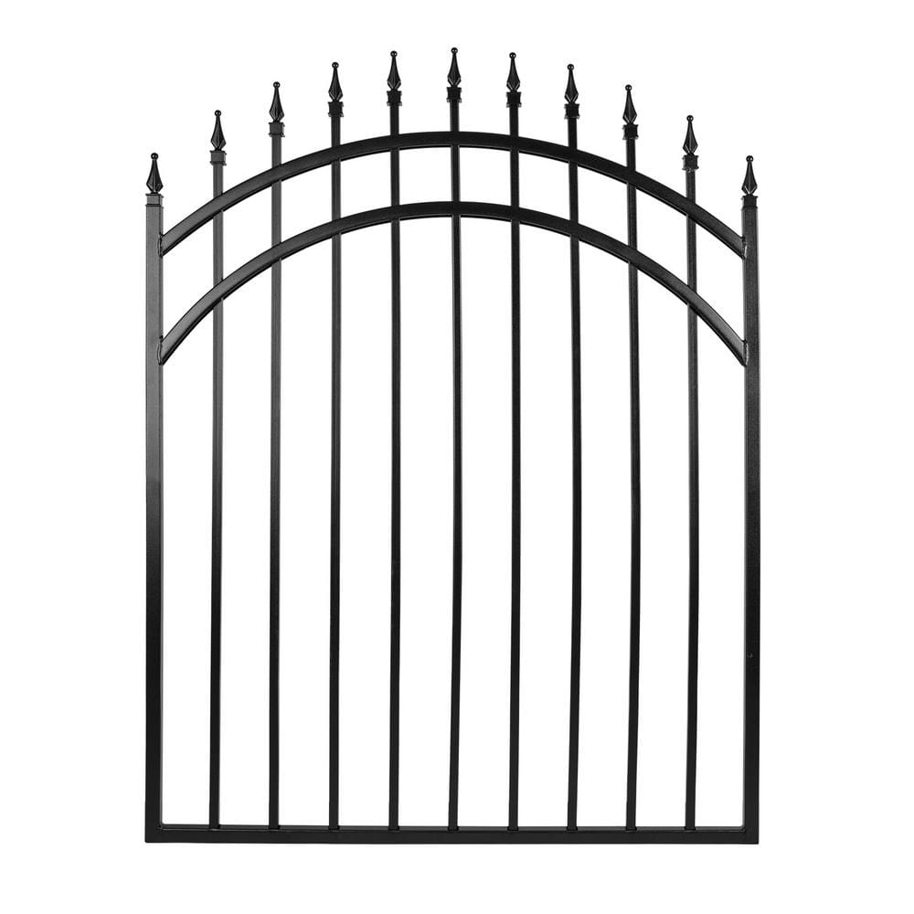 NUVO IRON 3.75 ft. x 4.67 ft. Tiger Eye Profile Black Metal Center Point Arched Top Fence Gate