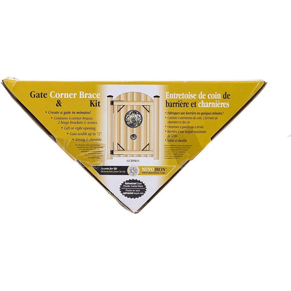 NUVO IRON Black Galvenized Steel Gate Corner Frame Brace and Hinge Kit (8-Piece)