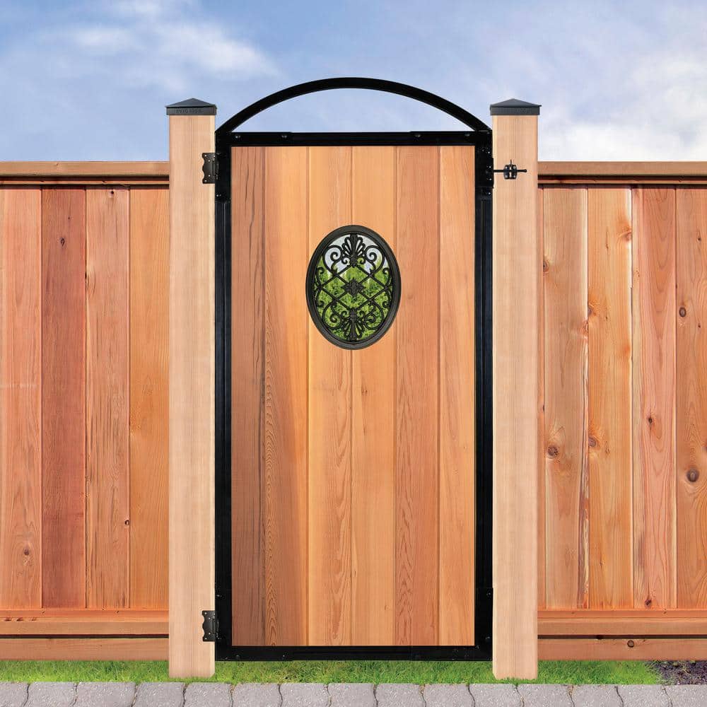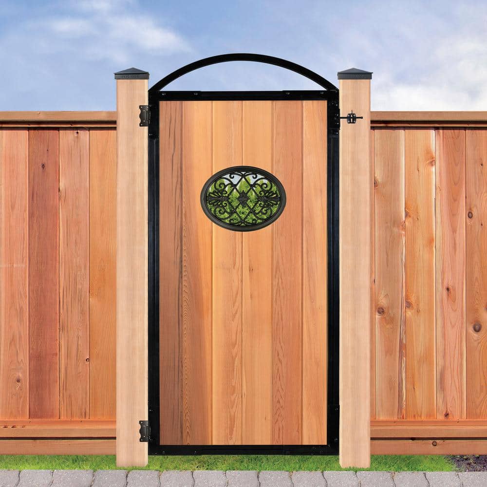 NUVO IRON EZ Install 6-Standard Fence Board Arched Pro Gate Frame with One 13 in. x 17 in. Oval Gate Insert
