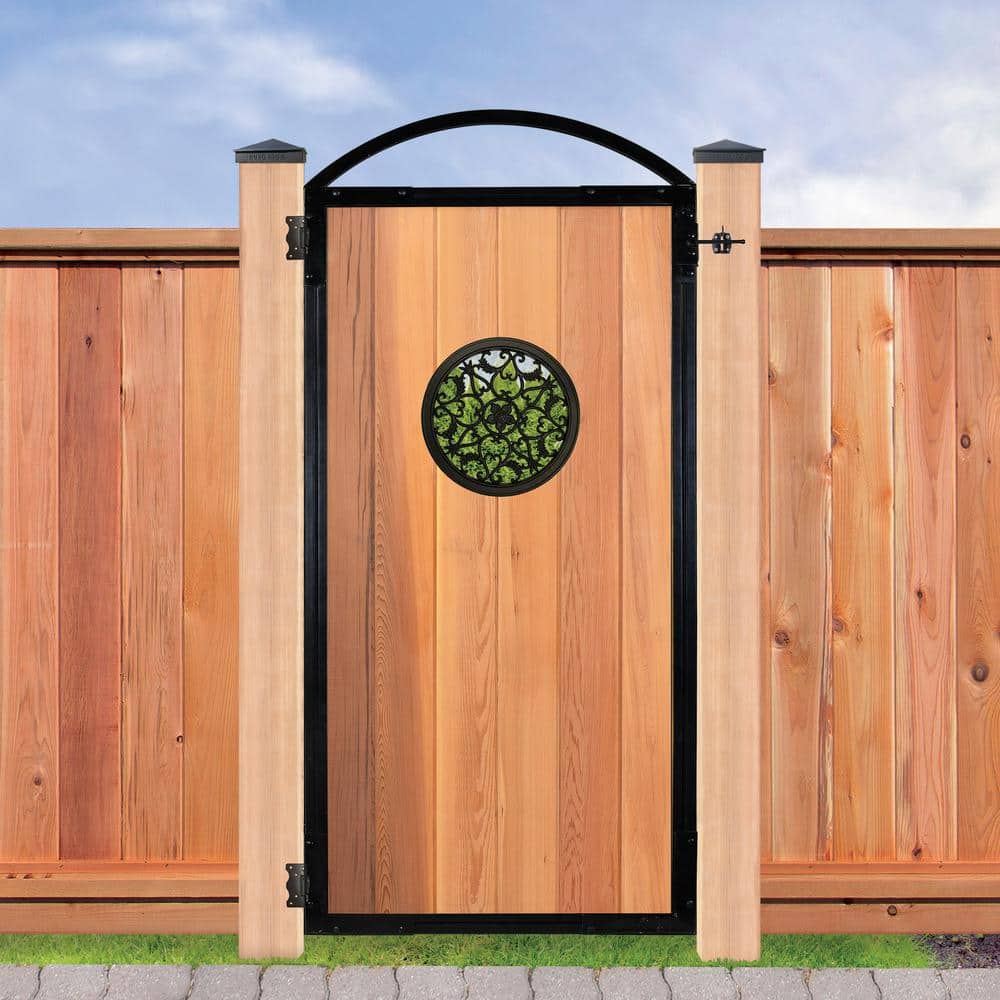 NUVO IRON EZ Install 6-Standard Fence Board Arched Pro Gate Frame with One 15 in. Dia Round Gate Insert