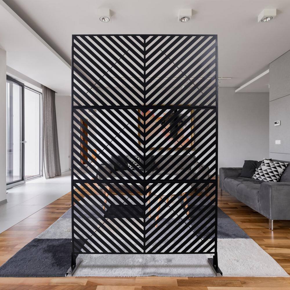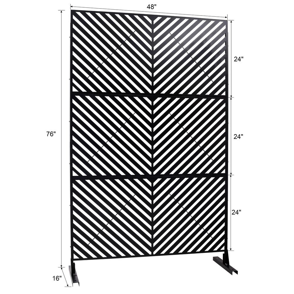 Enhance your space with the Tidoin 6.3 ft. x 4 ft. Black Steel Freestanding Privacy Fence Panel, designed to offer not only privacy but also aesthetic appeal to any indoor or outdoor area. Made from durable, rust-resistant metal, this panel is built to withstand harsh weather while maintaining its sleek, modern look. Easy to assemble and versatile in application, it's perfect for creating secluded areas on patios, balconies, or inside your home.