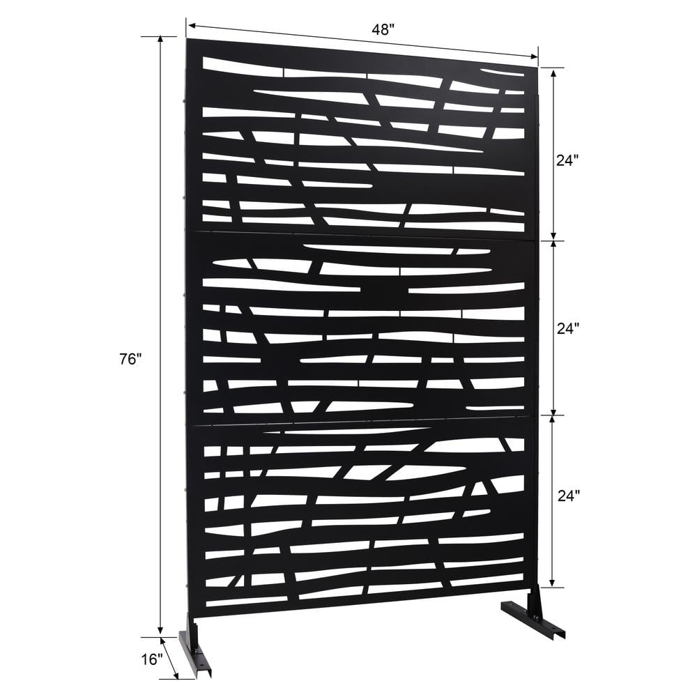 Enhance your outdoor or indoor spaces with the Tidoin Black Steel Decorative Privacy Screen. Designed for versatility, this freestanding panel provides privacy while adding a sophisticated touch to any setting. Made from high-quality metal, it offers durability and weather resistance, perfect for long-lasting use.