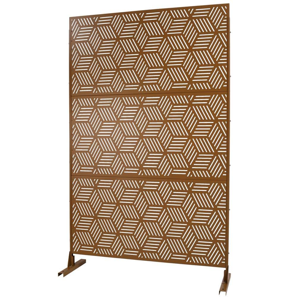 The Tidoin 6.3 ft. x 4 ft. Brown Steel Freestanding Privacy Screen offers an elegant way to enhance privacy and define spaces both indoors and outdoors. Crafted from rust-resistant metal, it's designed to withstand extreme weather and add visual appeal to any setting. Perfect for creating secluded areas on patios, decks, or as interior dividers.