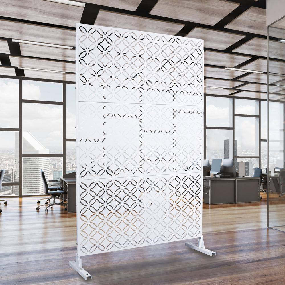 The Tidoin 6.3 ft. x 4 ft. White Steel Privacy Screen transforms both indoor and outdoor spaces into stylish havens of seclusion. With rust-resistant construction and classic design, this metal fence panel is perfect for creating separate areas or adding a decorative touch to any environment.