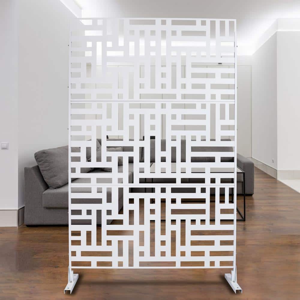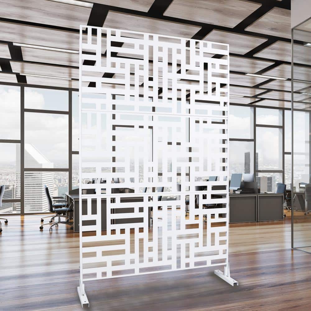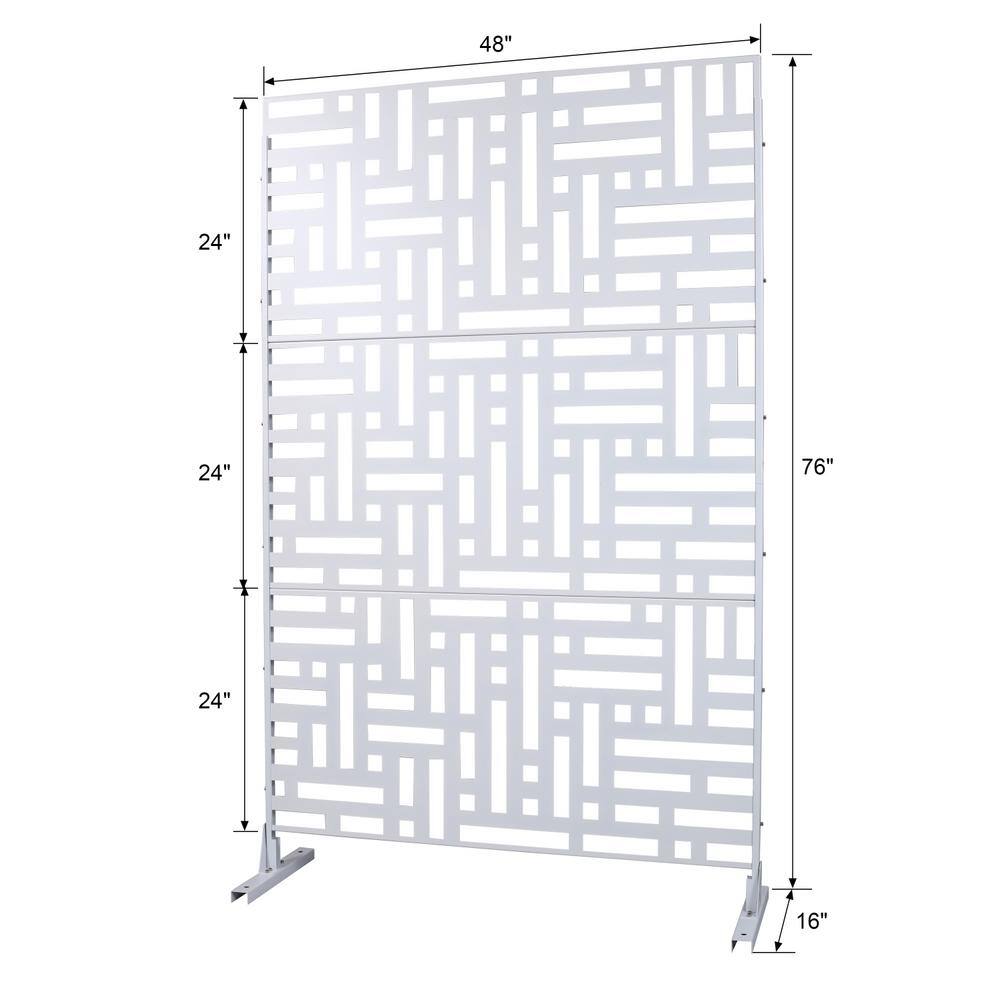 Elevate the style and functionality of your spaces with the Tidoin 6.3 ft. x 4 ft. White Steel Freestanding Privacy Screen. Built to resist rust and fading, this ornamental metal fence panel serves as an elegant divider for both indoor and outdoor use, integrating seamlessly into any environment.