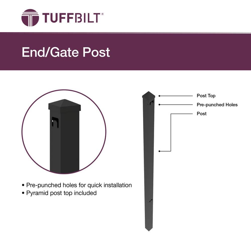 TuffBilt Mitchell 2 in. x 2 in. x 88 in. Black Aluminum Fence End Post