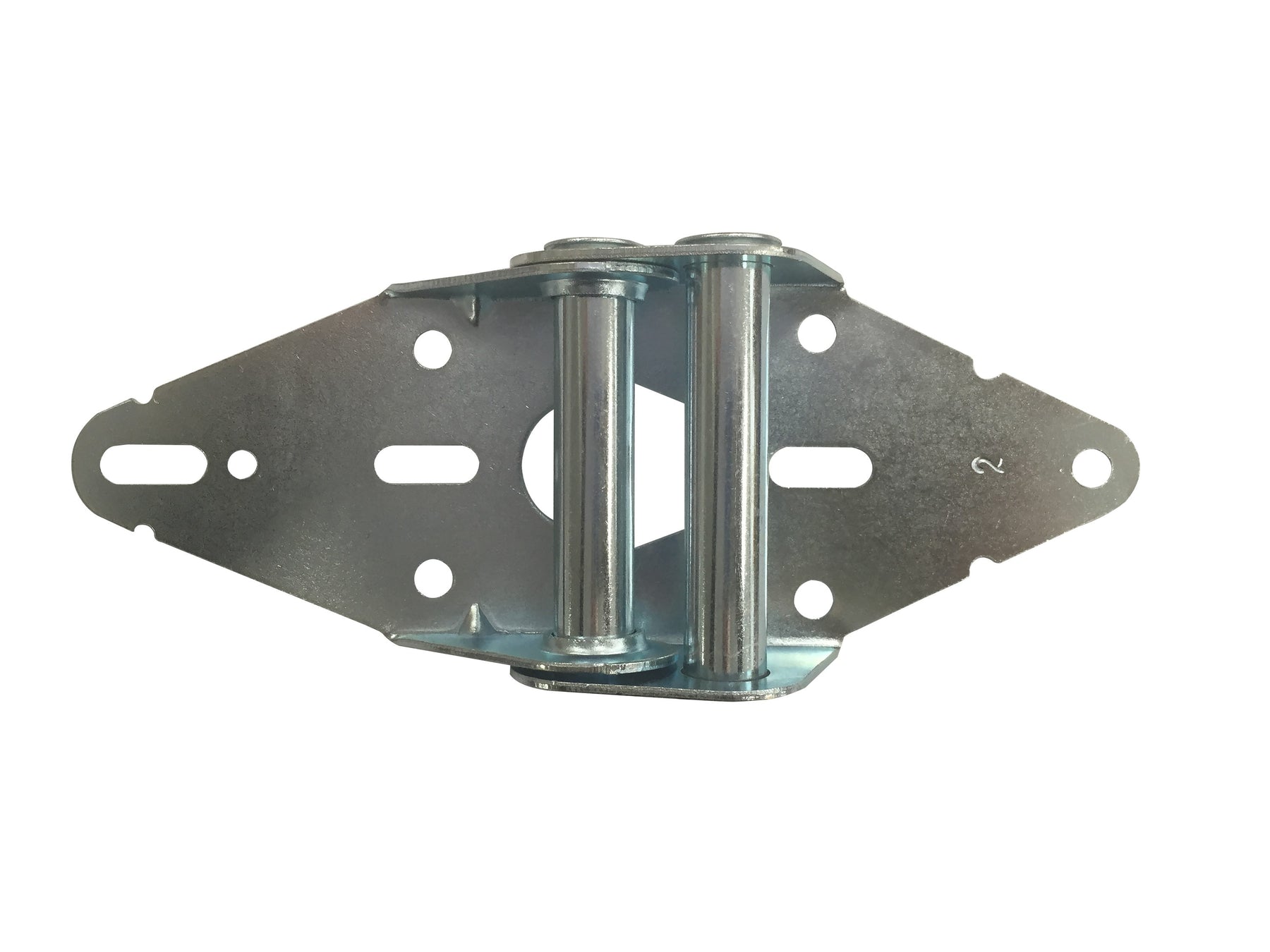 Durable #2 hinge for sectional residential garage doors, made from zinc-plated steel. Designed to connect the second and third panels for smooth operation and alignment.