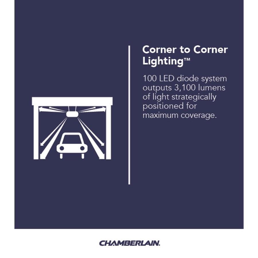 Chamberlain 1.25-HP myQ Corner To Corner Lighting Smart Belt Drive Garage Door Opener with MyQ and Wi-Fi Compatibility and Battery Back-Up and LED Light