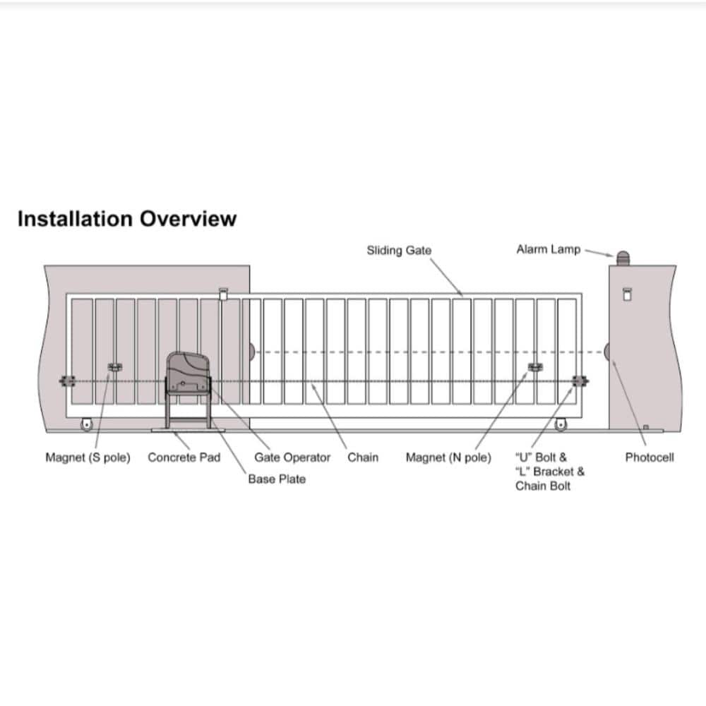 • Powerful Motor: Equipped with a 3/4HP equivalent motor for reliable gate operation.