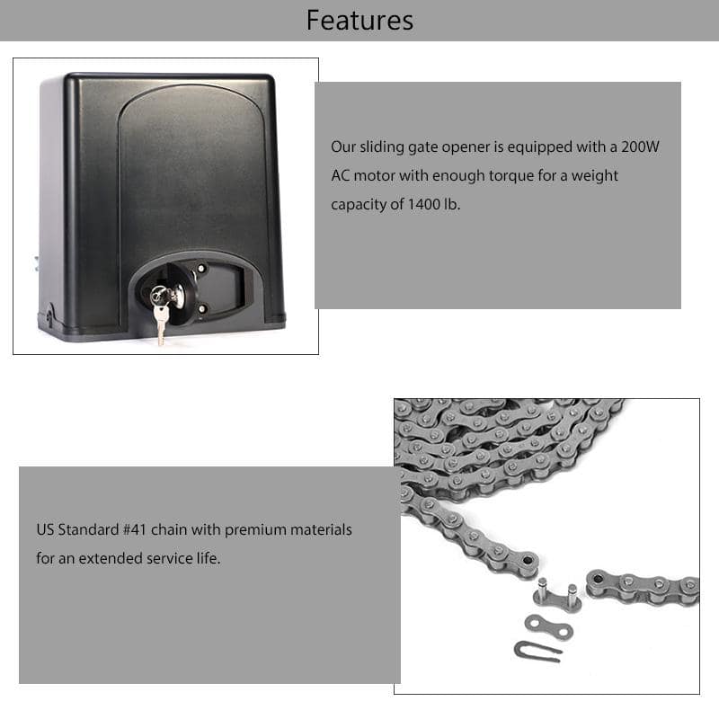 - Powerful Motor: The 200-Watt AC motor provides 16Nm of torque for efficient gate operation.