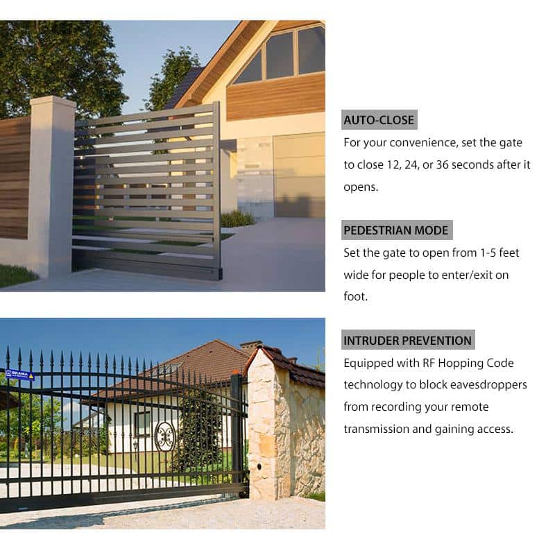 - Autoclose Function: Set your gate to close automatically in 12, 24, or 36 seconds after opening.
