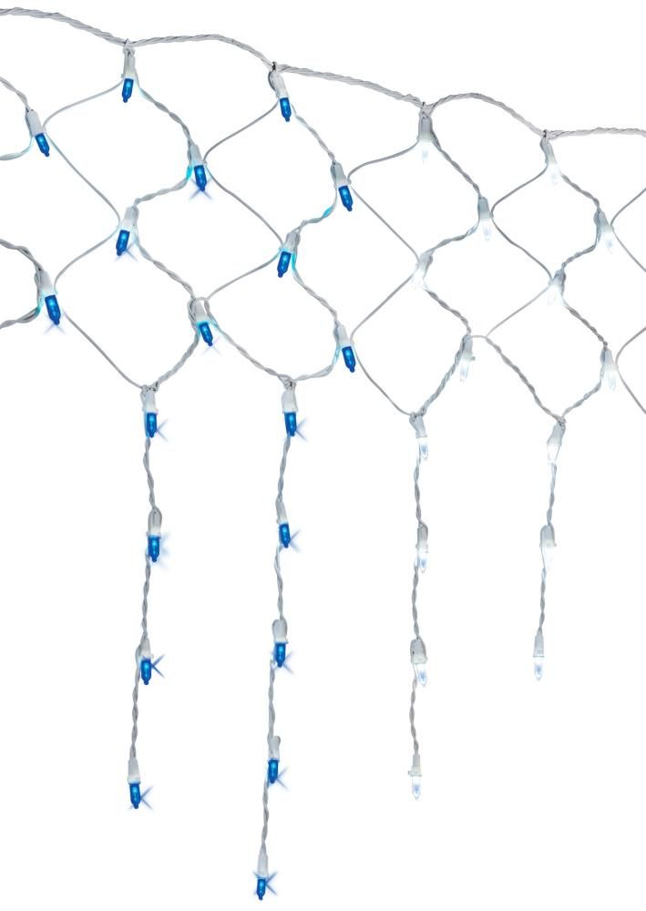 145-Count GE LED color choice net icicle light set Use control box to choose blue, cool white or light show With LED lights you get up to 80% energy savings Connects up to 4 sets White cord set with fused plug and 12-Inch lead wire Replacement bulbs and fuses included for added convenience ENERGY STAR rated Available only at ARB265W