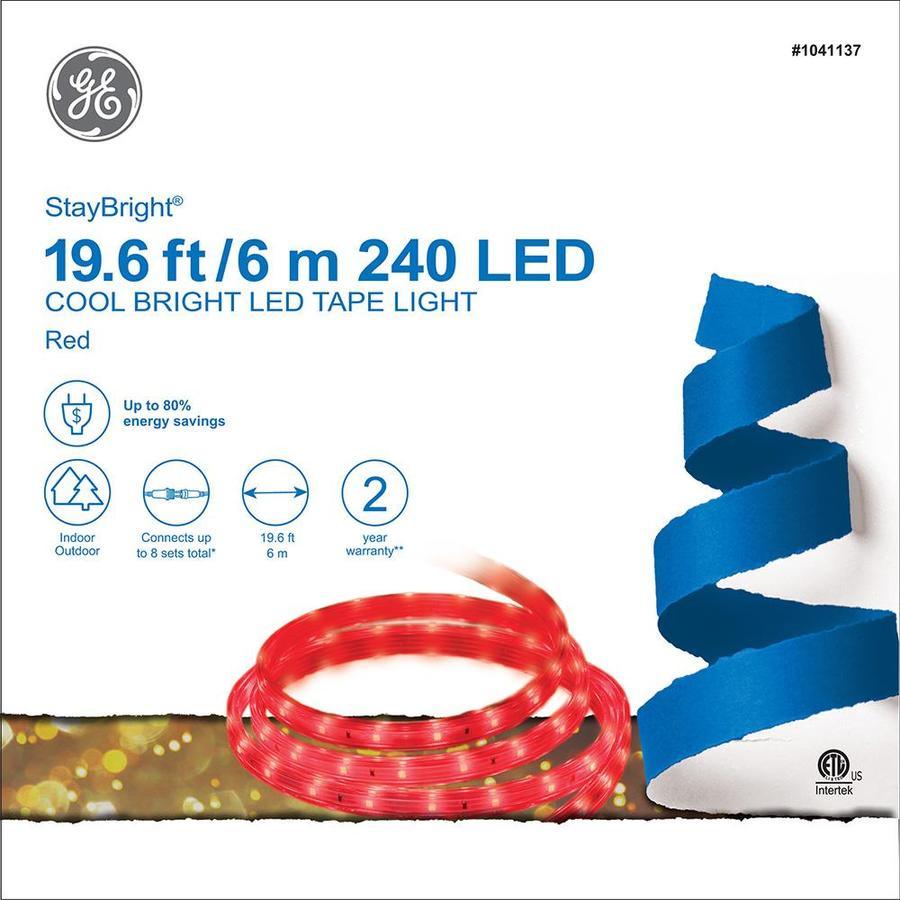 GE StayBright 240-Light 19.6-ft Red Integrated LED Christmas Tape Lights