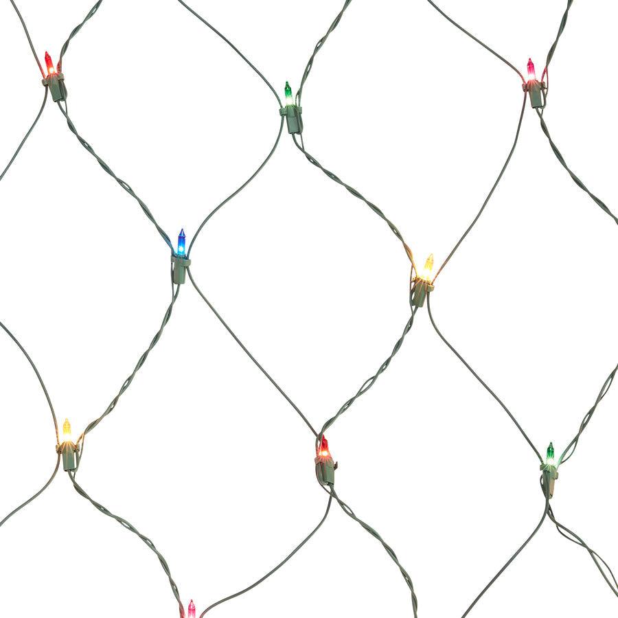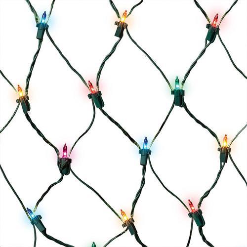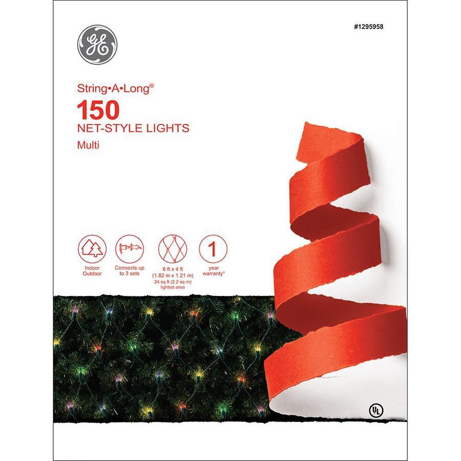 150 GE String-A-Long multicolor incandescent net lights 24 Square foot lighted area with end connector plug 4.5-Inch x 8-inch pattern Can connect up to 3 sets Replacement bulbs and fuses included for added convenience