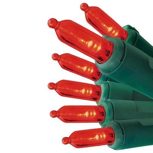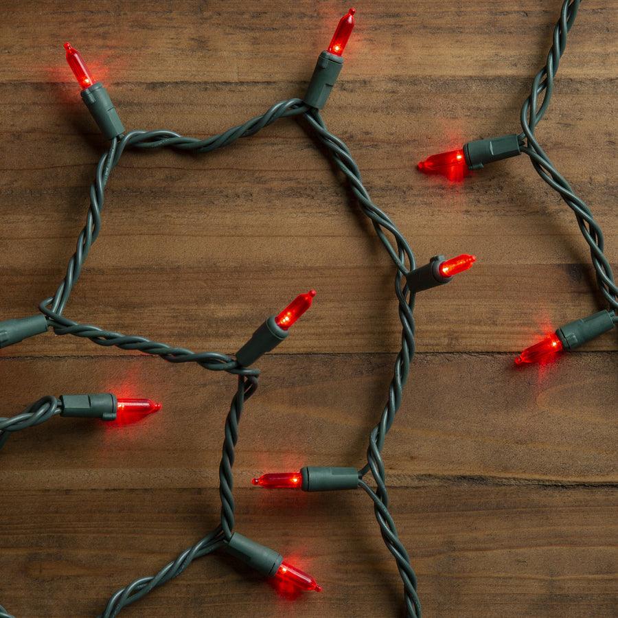 100-Light GE StayBright LED mini red light set With LED lights you get up to 80% energy savings 24.7-Lighted length, green cord with fused plug Can connect up to 25 sets Replacement bulbs and fuses included for added convenience ENERGY STAR qualified products help you save money on utility bills without sacrificing performance, style or comfort Available only at ARB265W