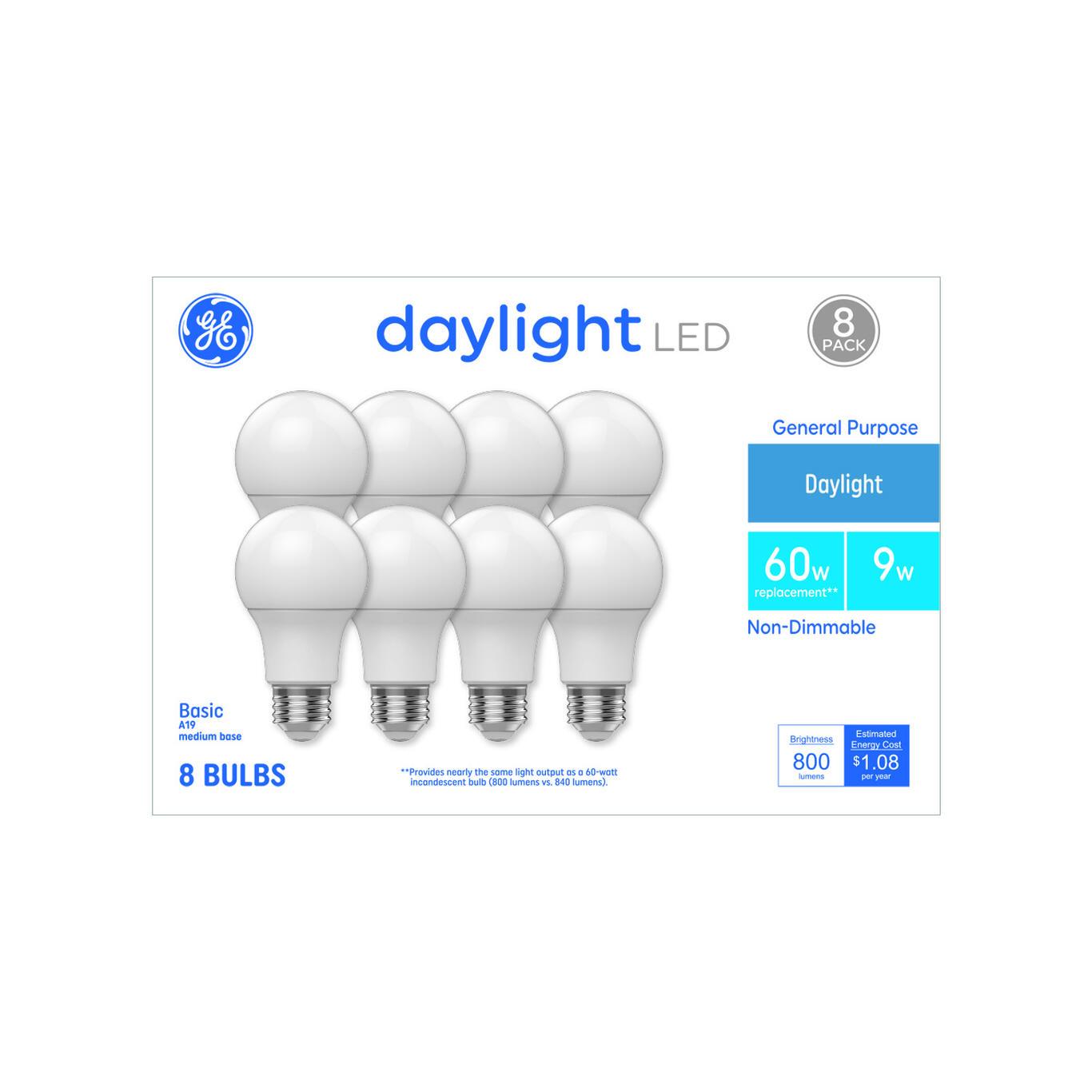 GE Basic LED A19 Light Bulbs, 60W Replacement, 9W, Daylight, Non-Dimmable (8-Pack)