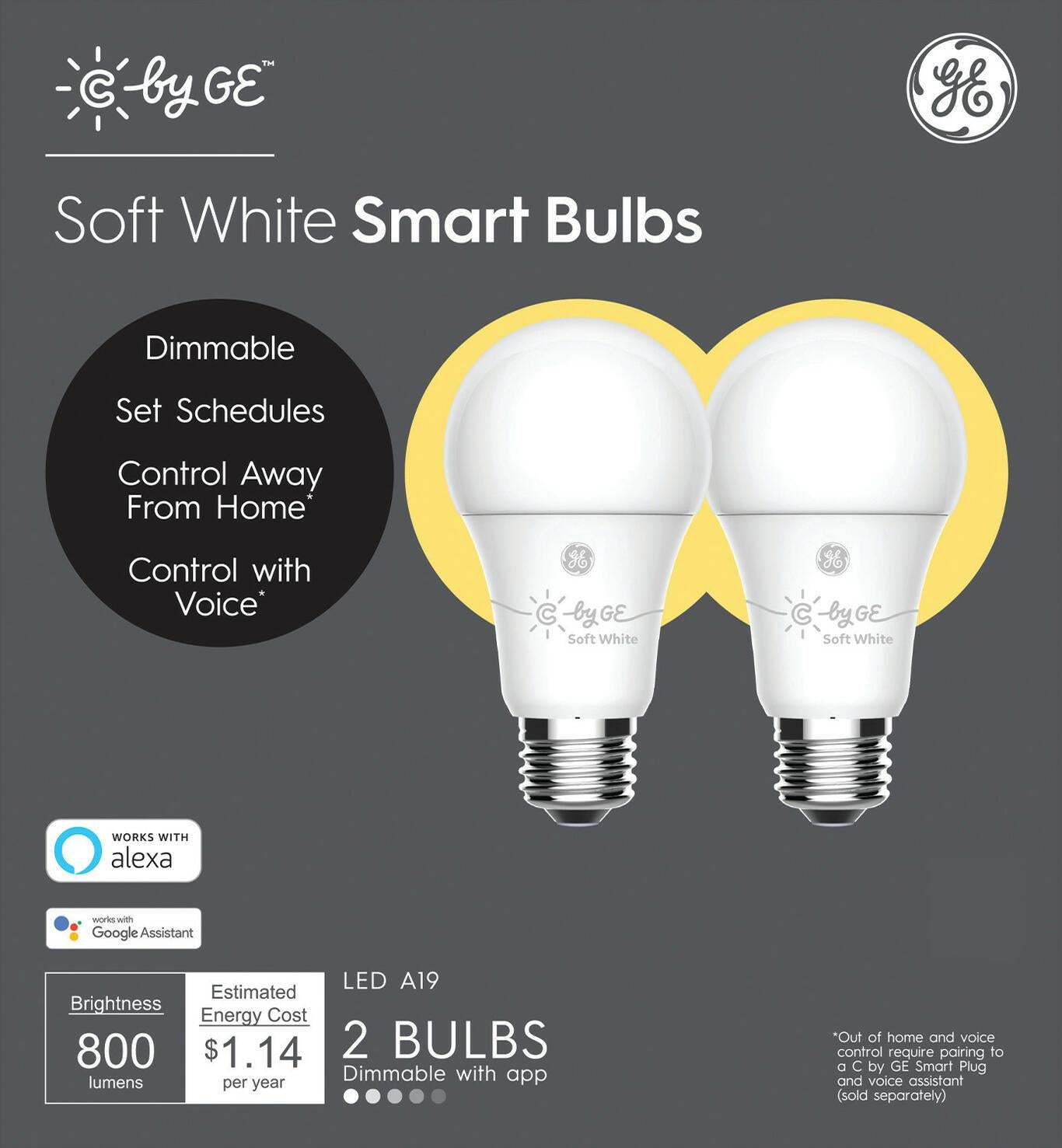 GE Smart A19 Soft White Dimmable LED Bulbs, 2-Pack