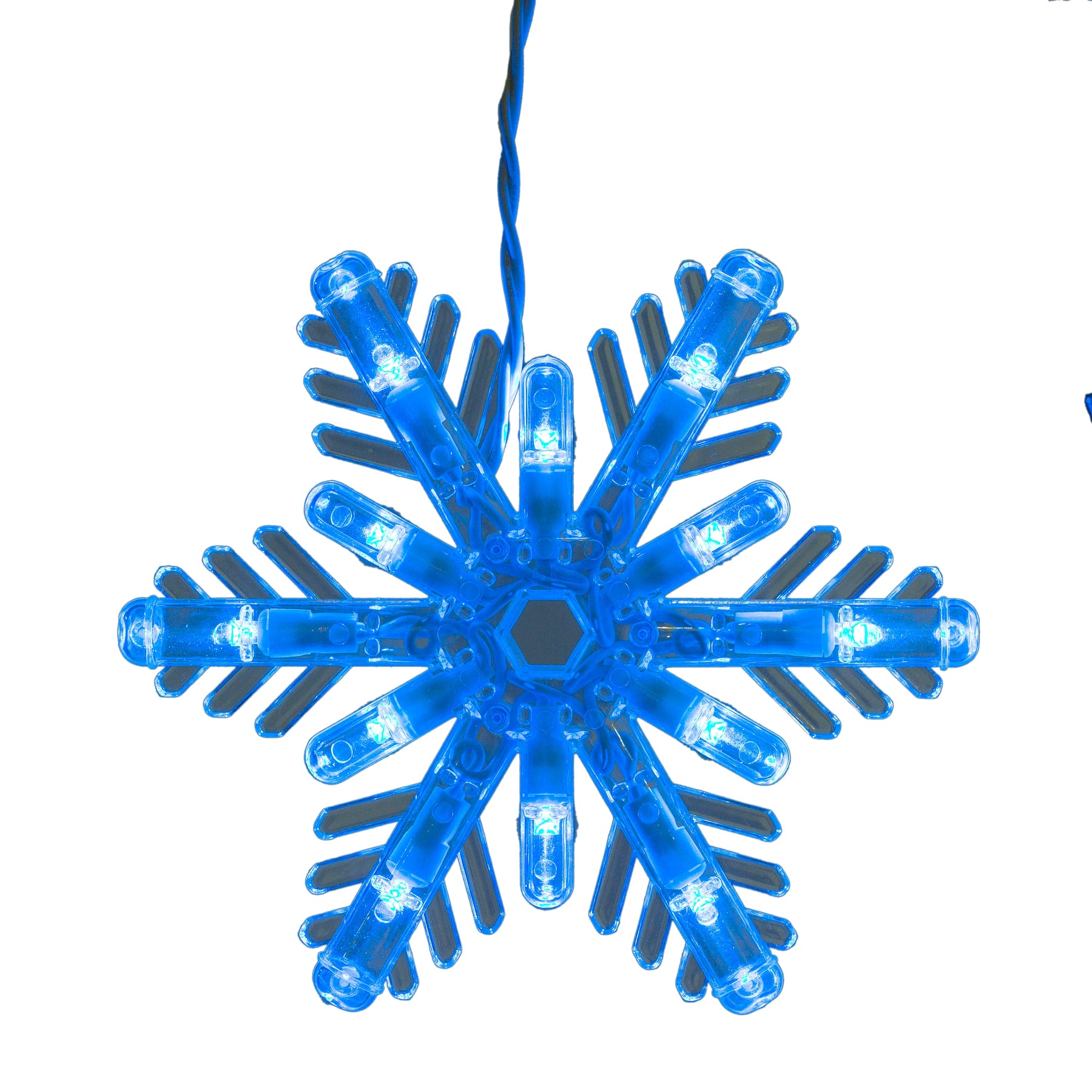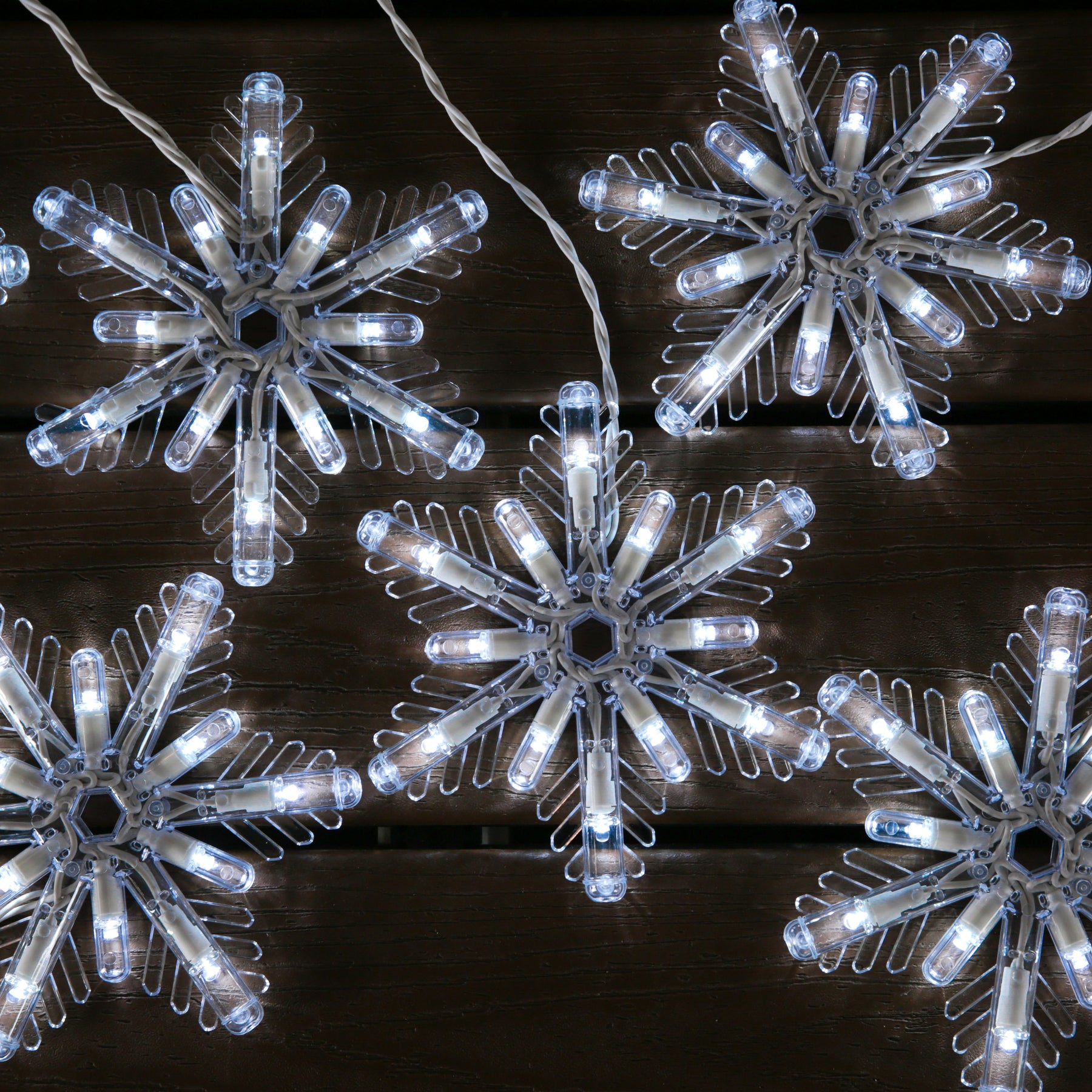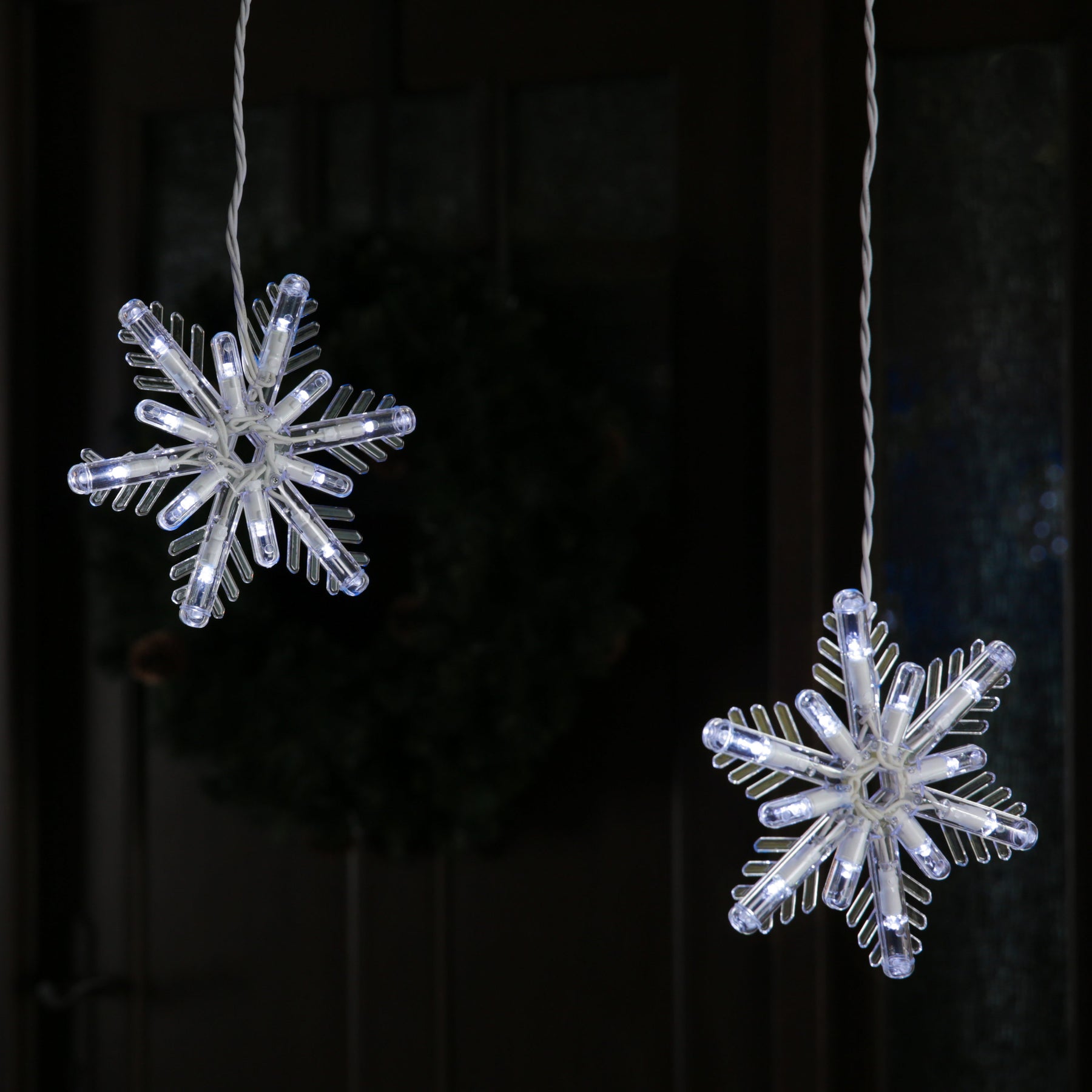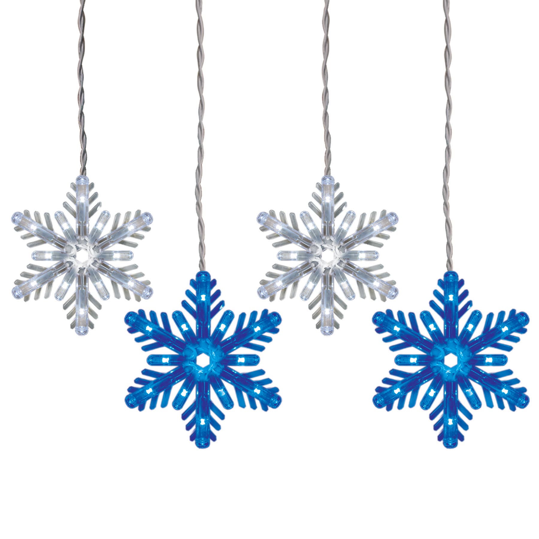• Snowflake Design: Eight 7-inch snowflakes create a striking icicle-style display