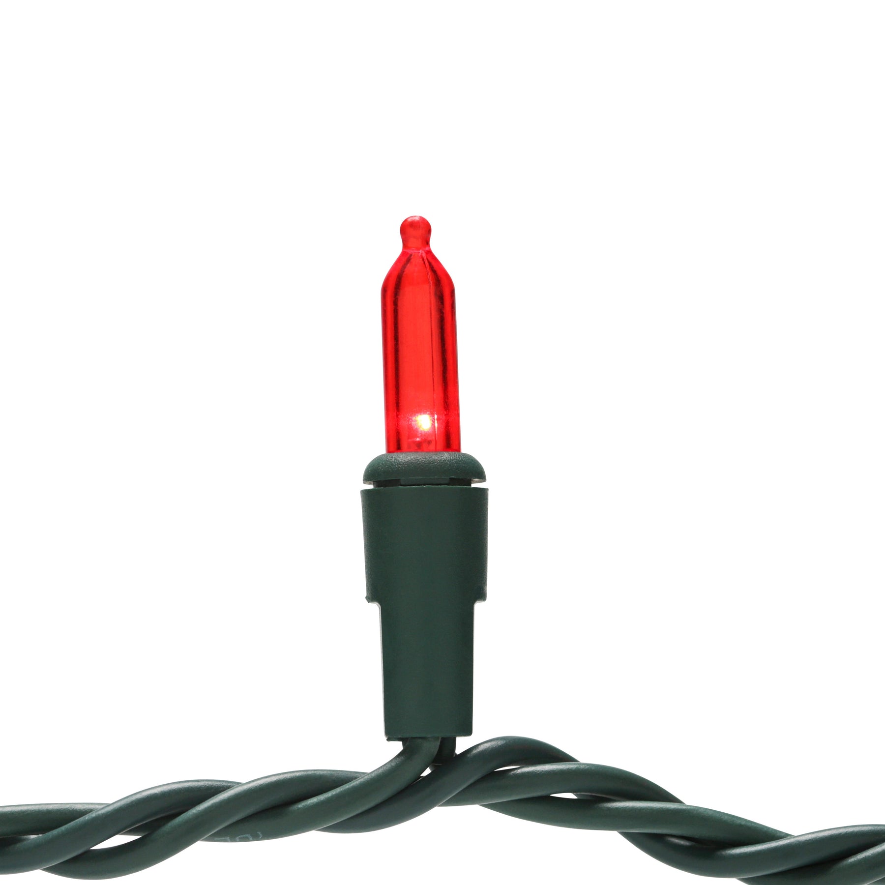 - Classic Mini Style: 5.5mm transparent red bulbs with 3-in spacing