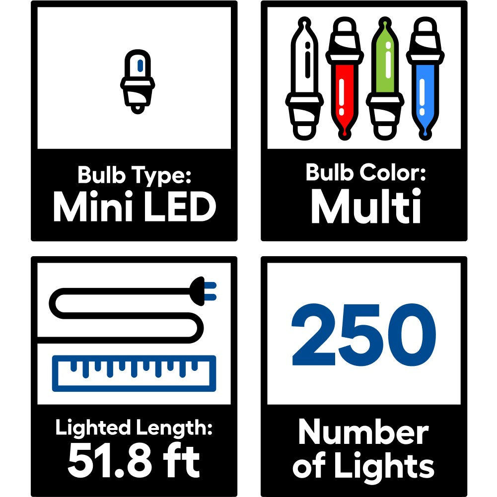 - Generous Coverage: 51.8-ft lighted length with 250 micro LED bulbs for expansive decorating