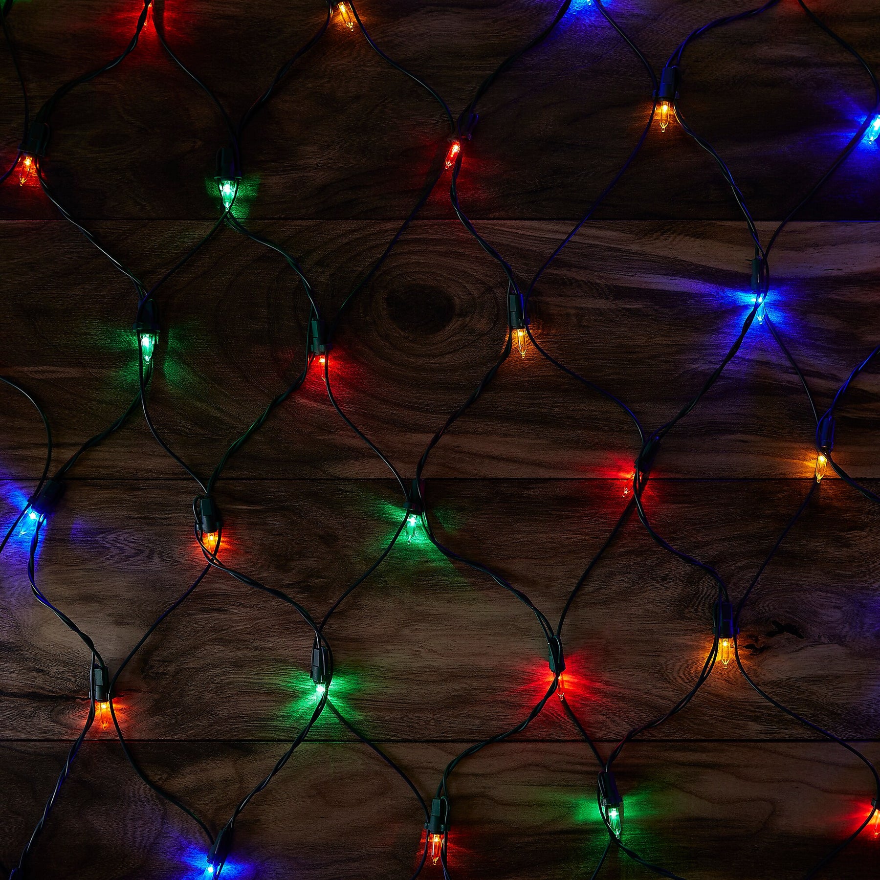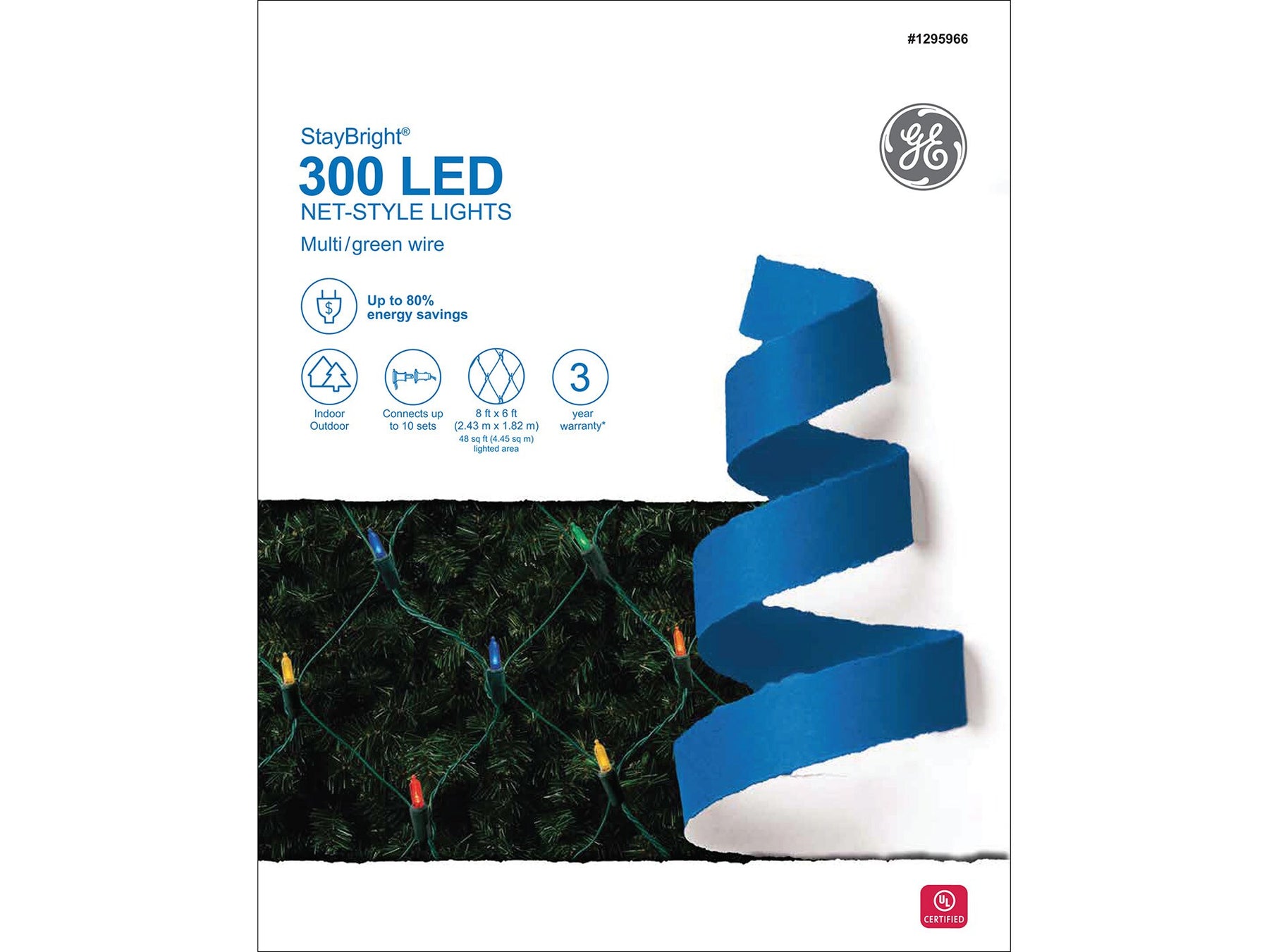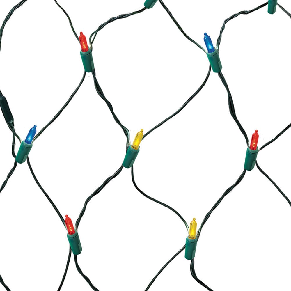 Brighten shrubs and railings with GE StayBright 300-count multicolor LED net lights. The 6-ft x 8-ft net delivers even coverage, links up to 10 sets, and is built for indoor/outdoor use with a green cord and fused plug.