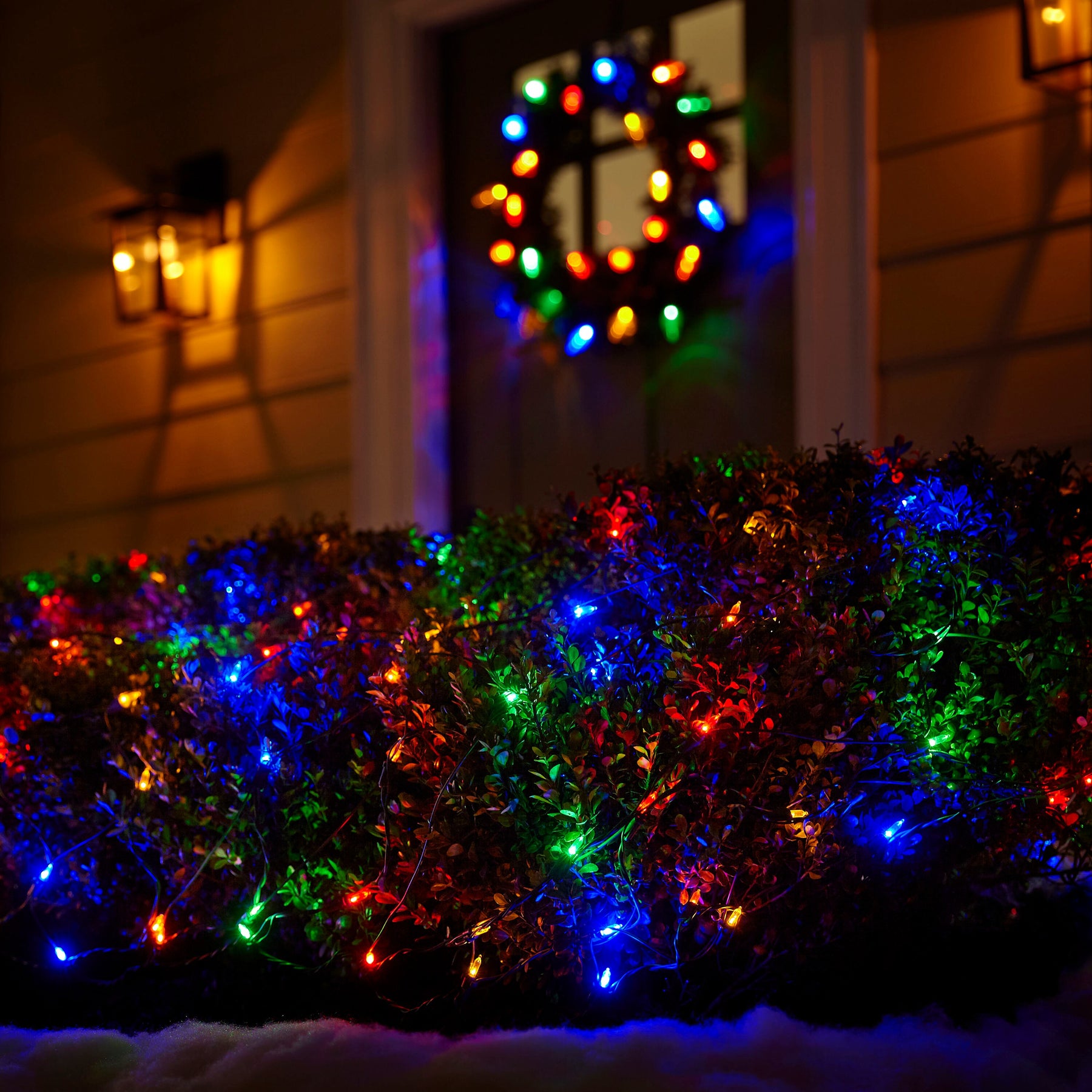 These GE StayBright net lights drape greenery in a sumptuous veil of color, creating an instant festive ambiance. I love the uniform lattice of 300 LEDs—each point a vibrant gem that sparkles across hedges and railings. Layer them beneath evergreen garlands or pair with a classic wreath for a polished, high-contrast facade. It’s an easy, chic essential for a sophisticated holiday exterior.