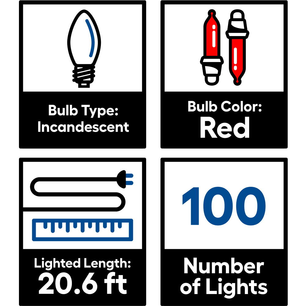 - Classic Incandescent Glow: 100 red mini bulbs deliver warm, festive illumination