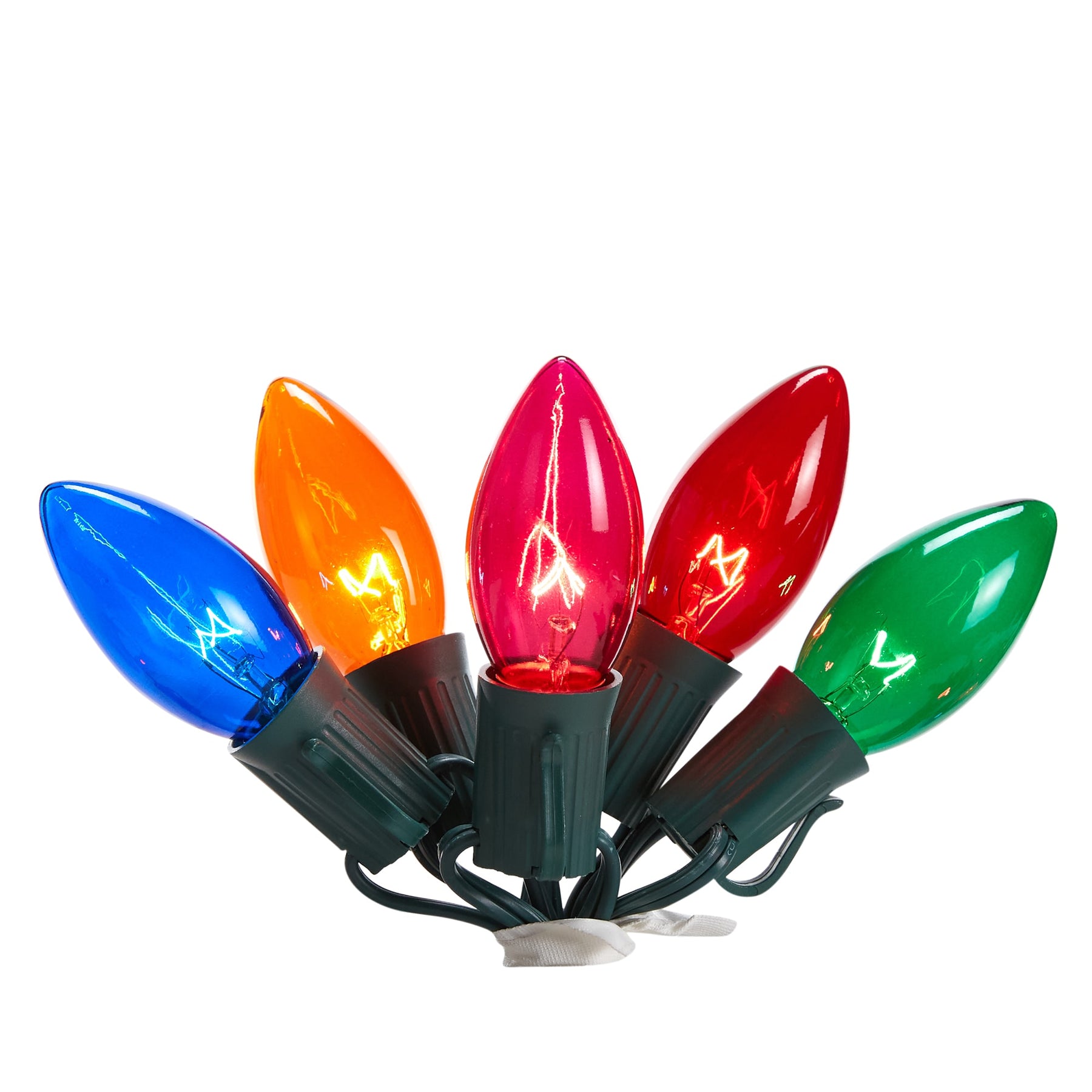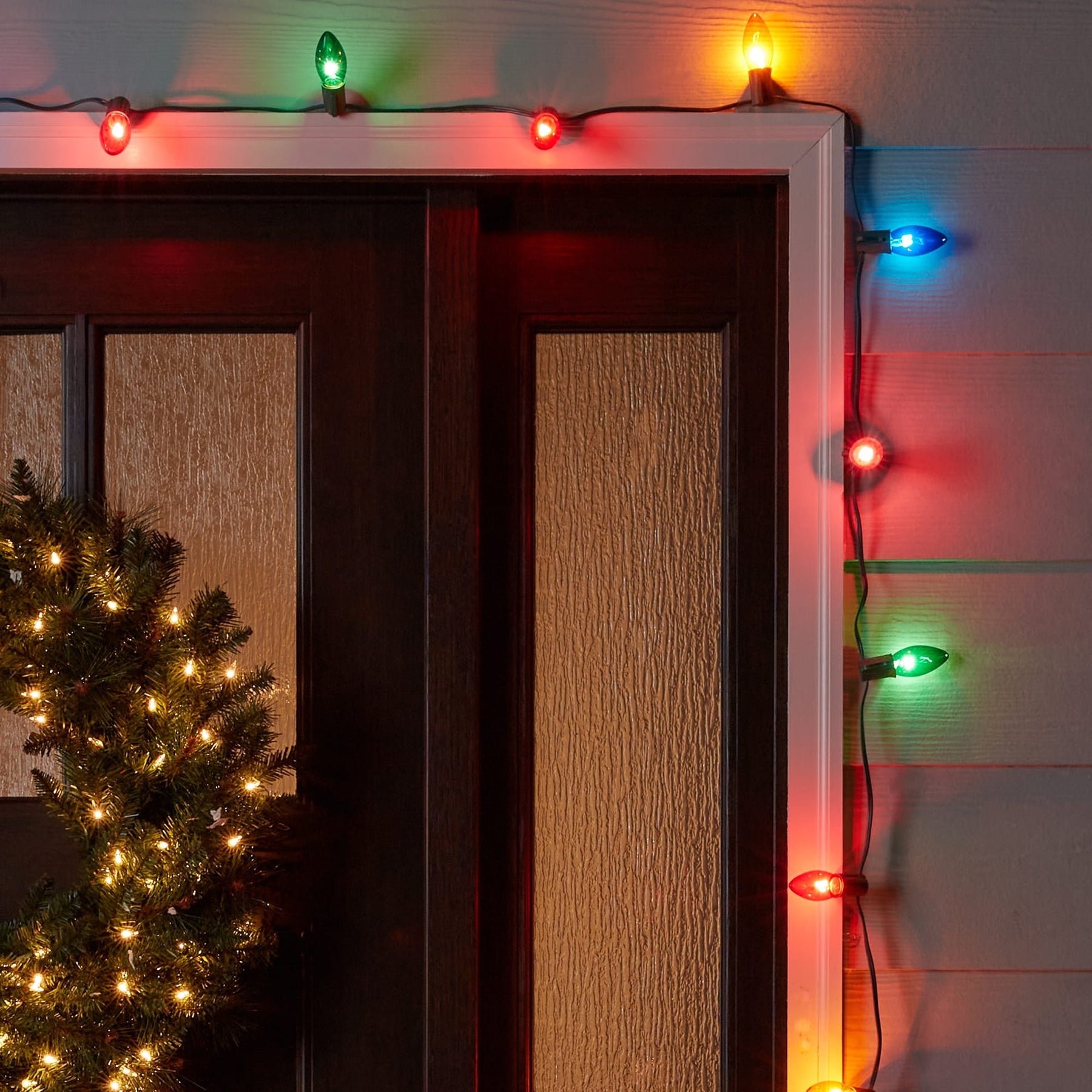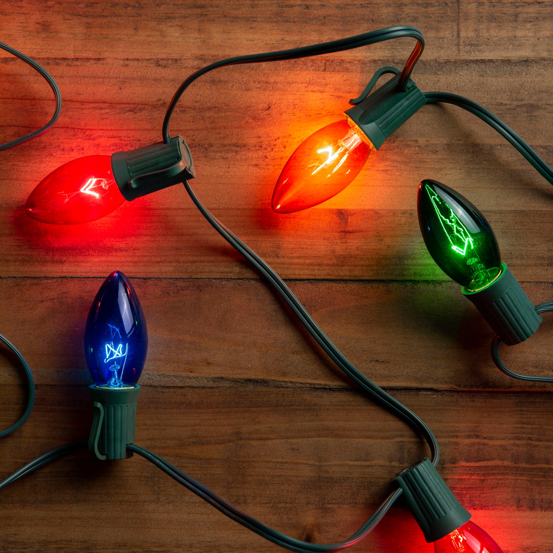 Classic GE C9 incandescent string lights bring nostalgic multicolor glow to your holiday décor. This 25-light set features a 16-ft lighted length on a green cord with fused plug, suitable for indoor or outdoor use and linkable up to two sets.
