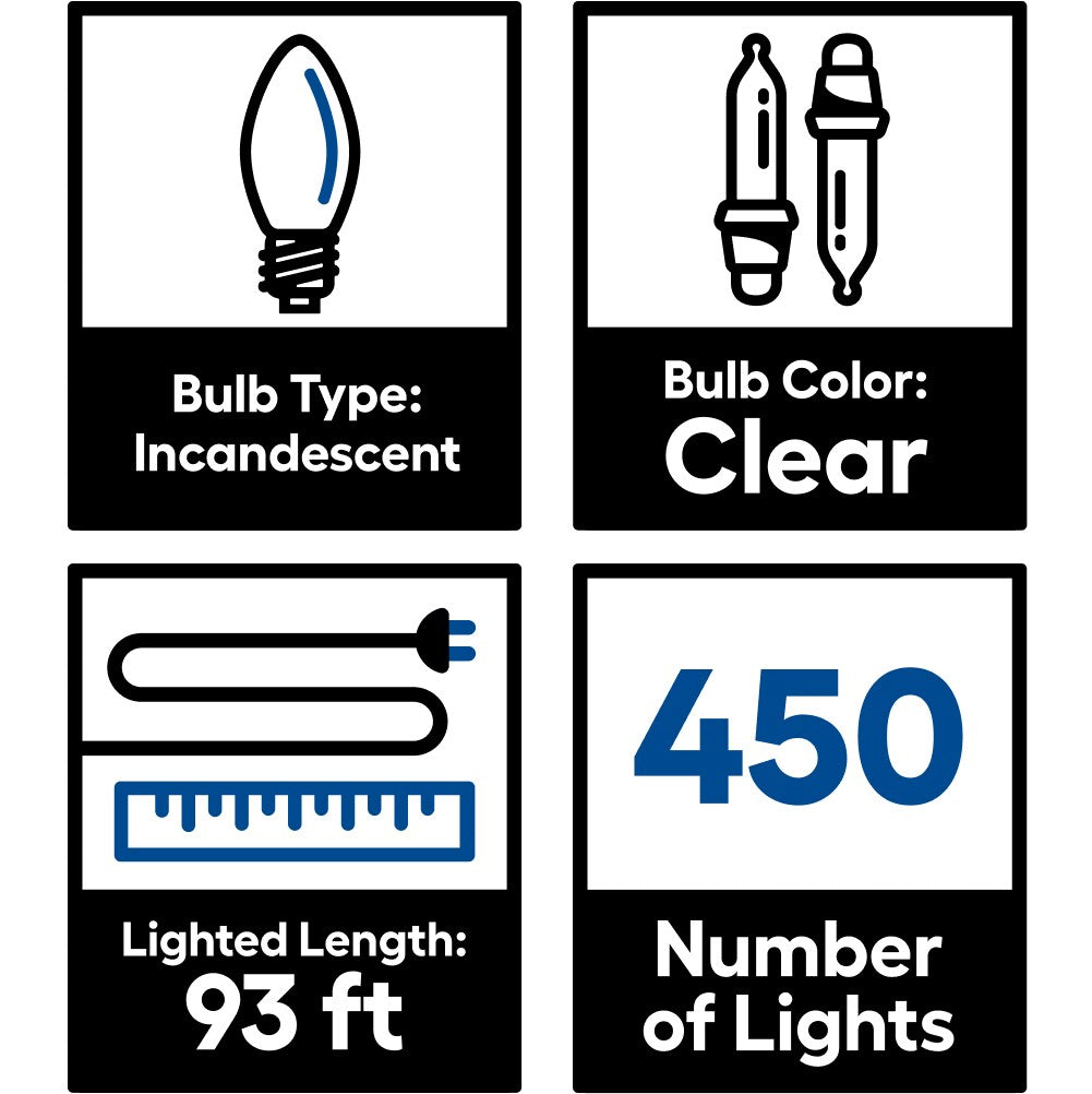 • High-Capacity Set: 450 clear mini incandescent bulbs across 3 strands (150 each) for wide coverage