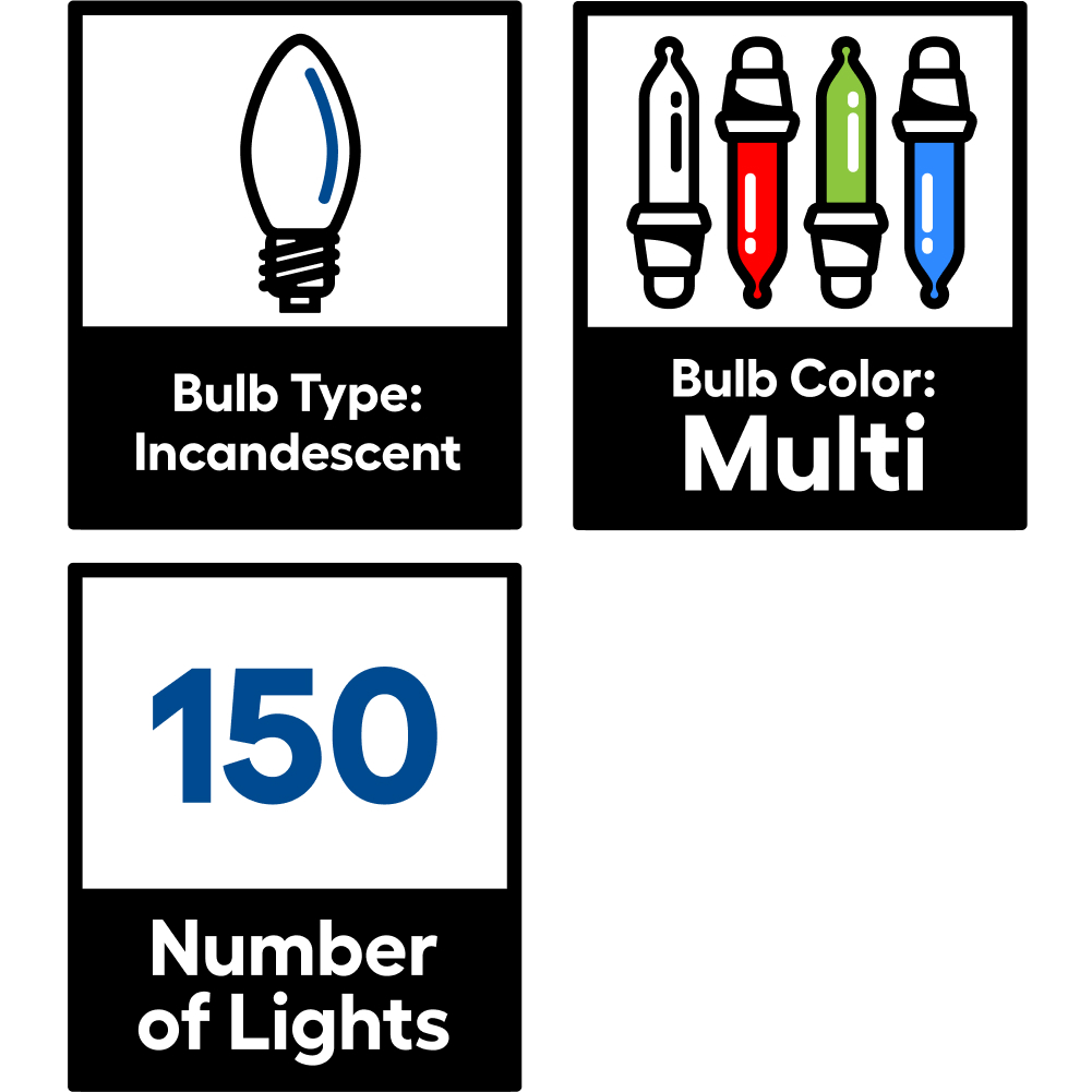 • Classic Incandescent Glow: 150 multicolor mini bulbs deliver warm, festive light