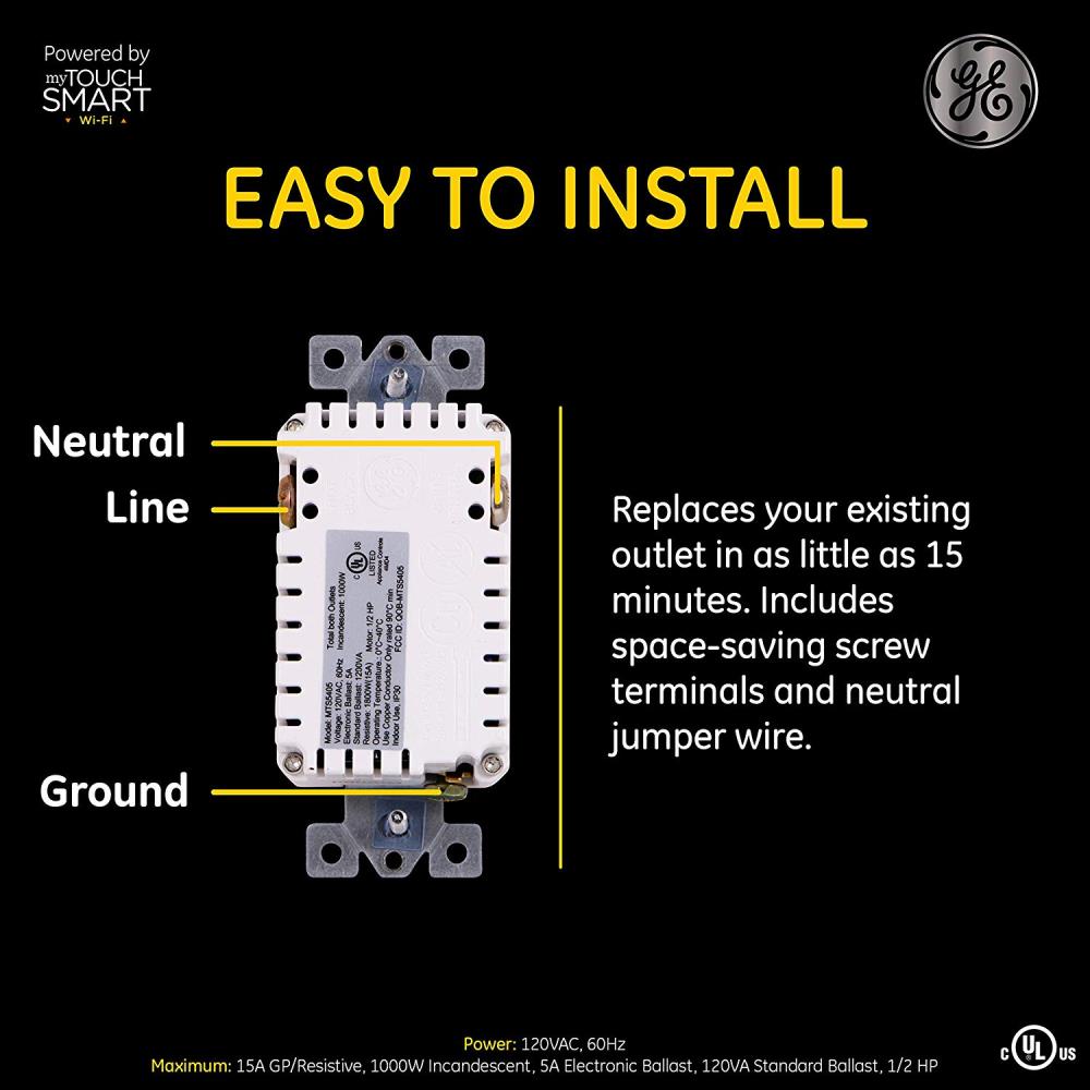 • Easy Installation: Replaces an existing outlet in about 15 minutes; neutral wire required and neutral jumper included; space‑saving screw terminals.