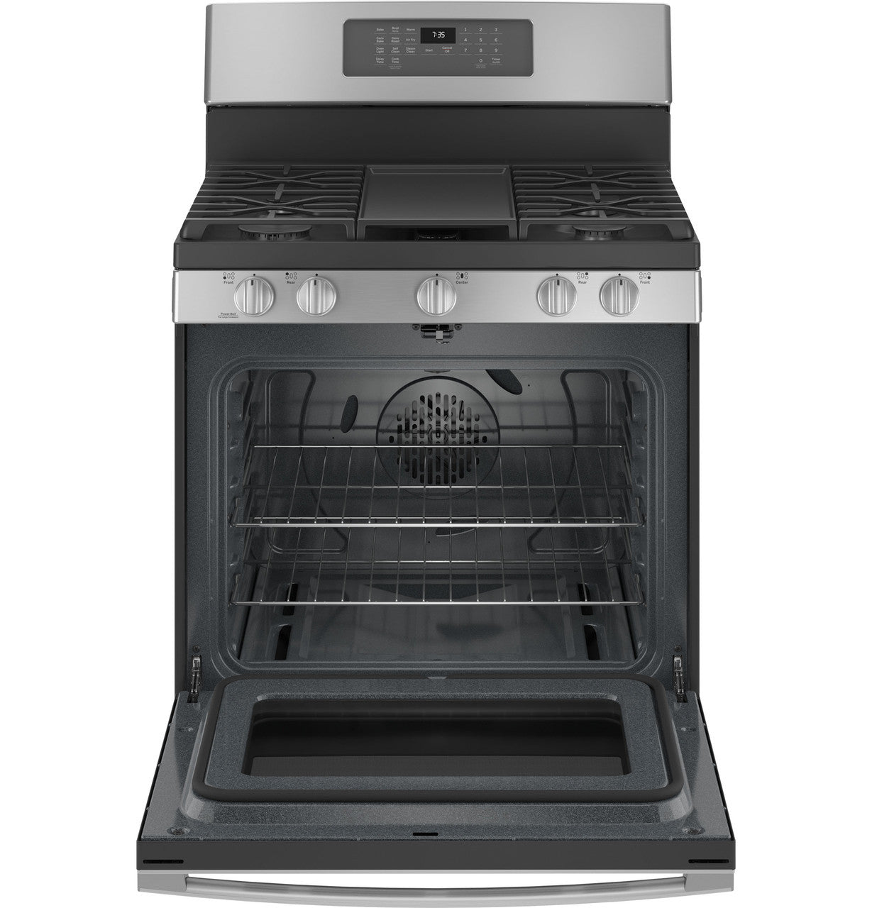GE 30 in. 5.0 cu. ft. Gas Range with Self-Cleaning Convection Oven and No Preheat Air Fry in Stainless Steel (JGB735SPSS)