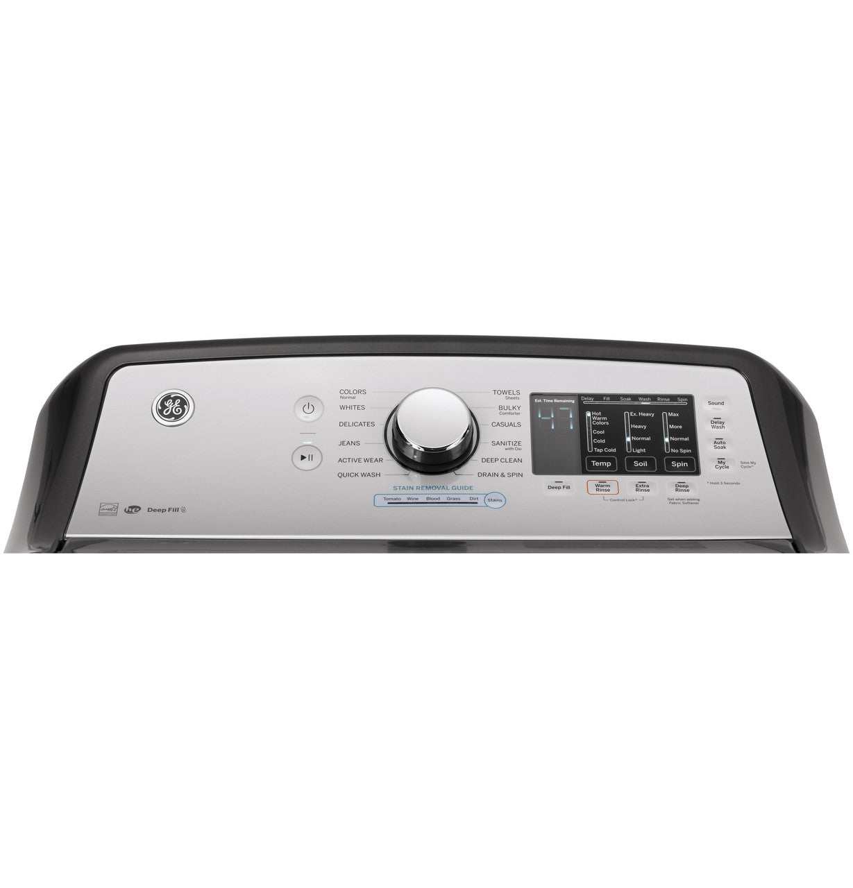 • Deep Fill + Multiple Rinses: Customize water level and choose Deep, Extra, or Warm Rinse to tackle stubborn soils.